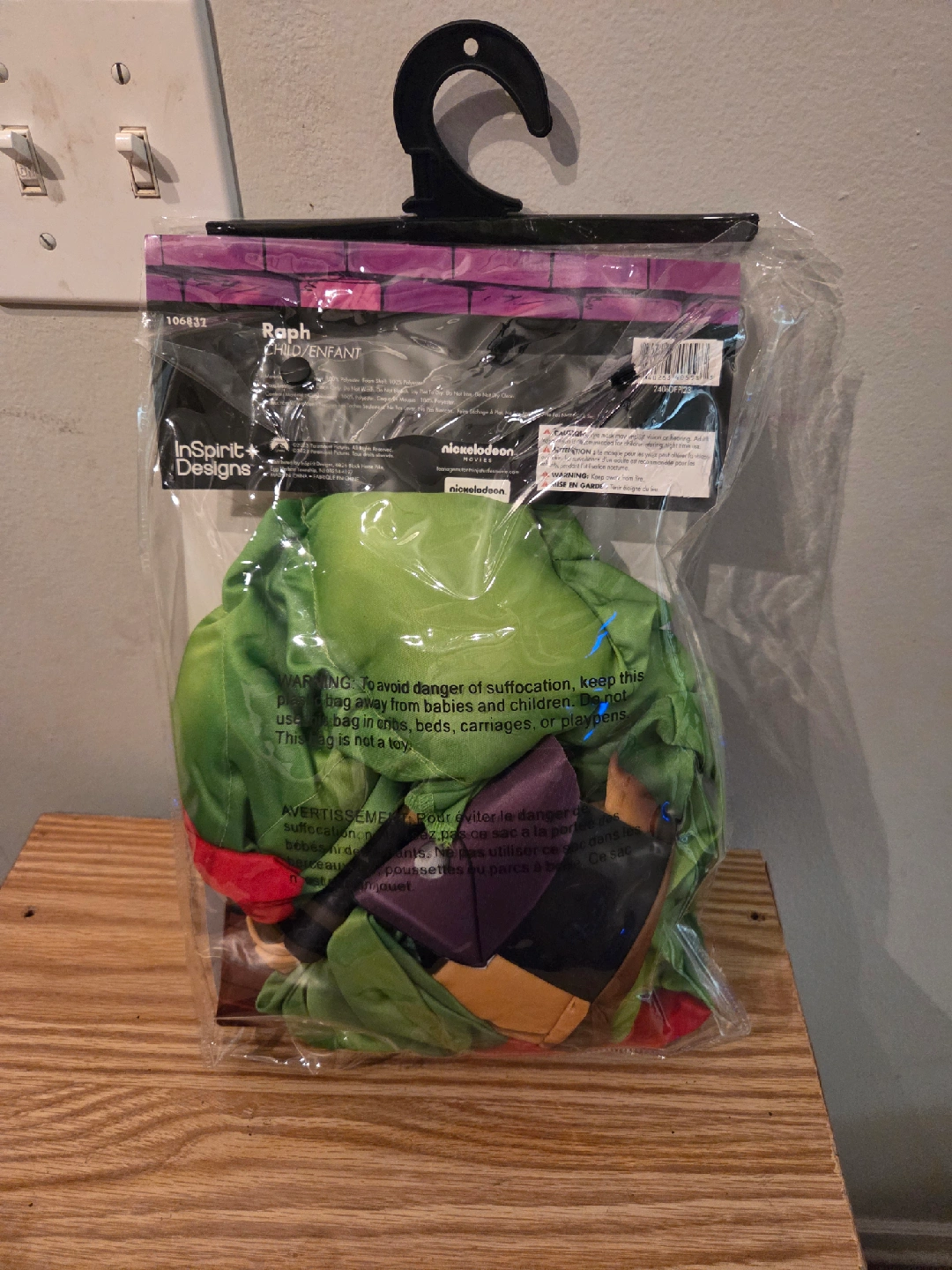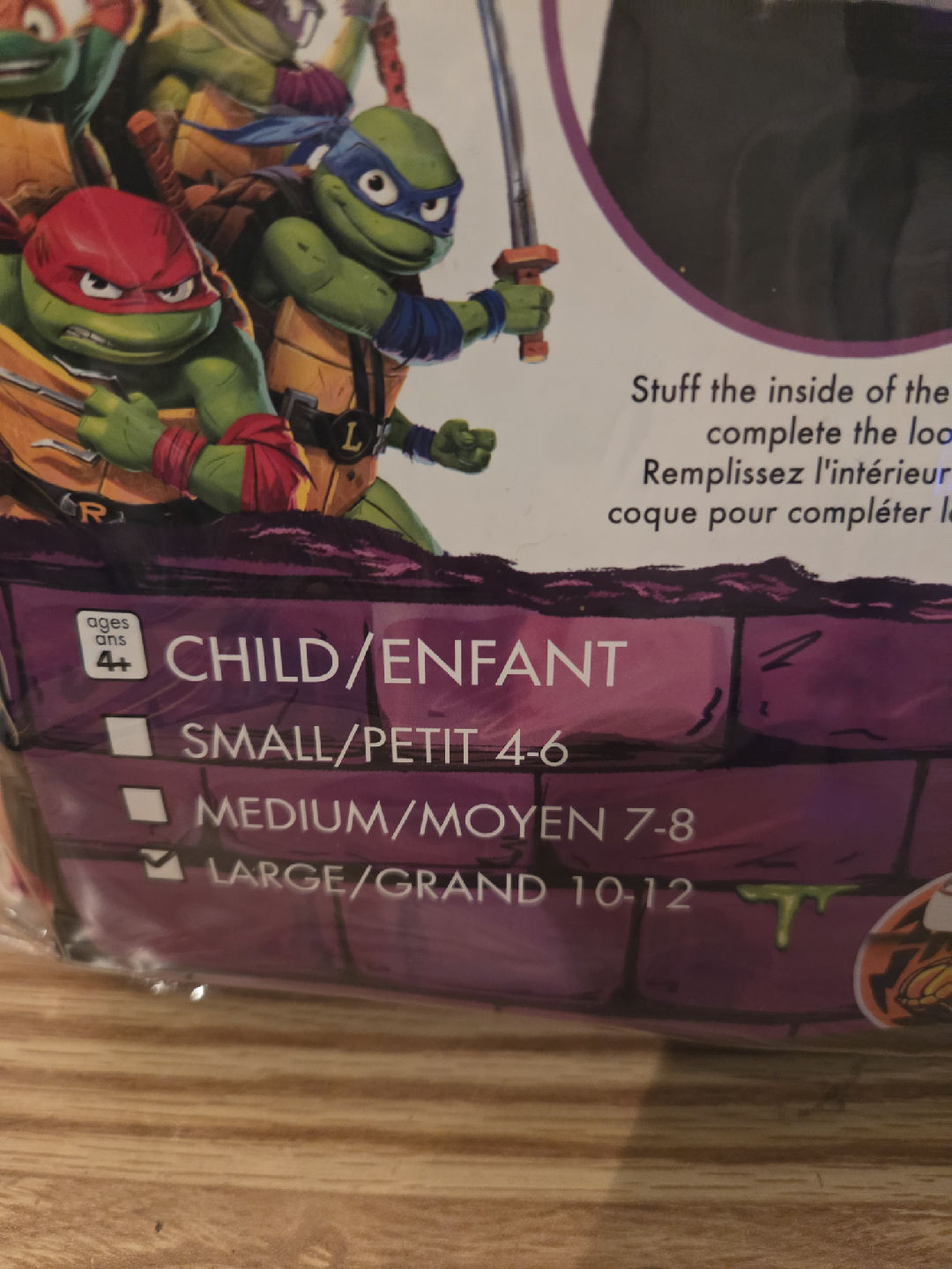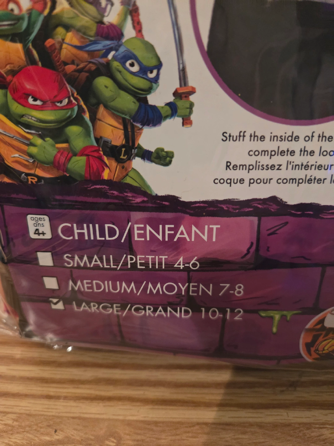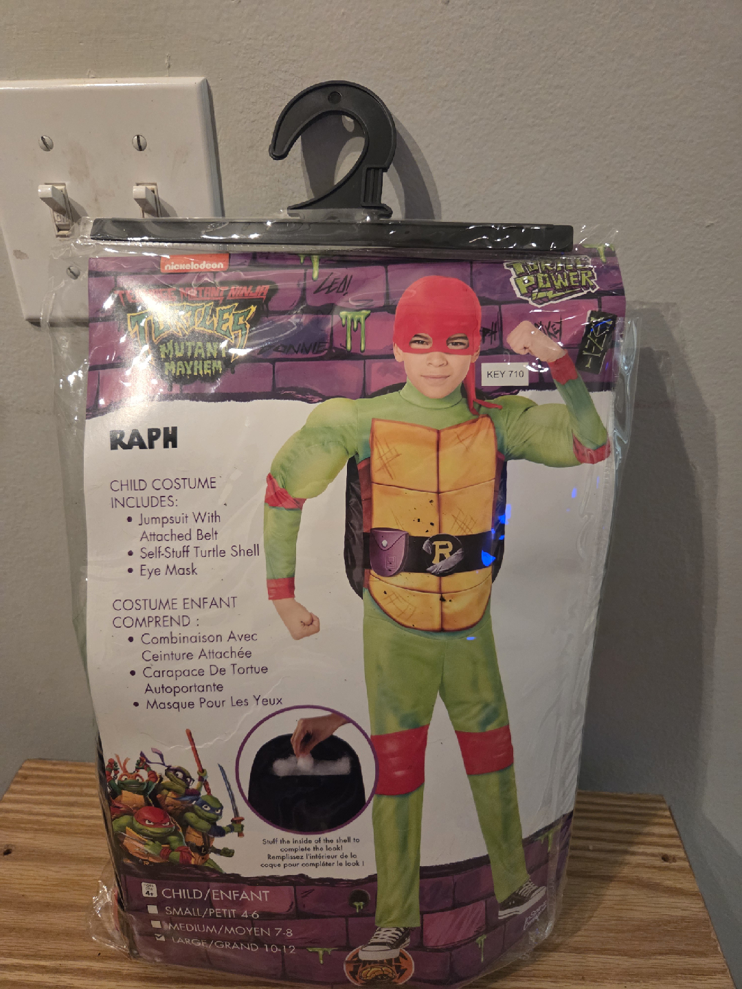 Get ready to go trick-or-treating with this Raphael costume from Teenage Mutant Ninja Turtles! It's a size medium (7-8) and includes the jumpsuit, attached belt, soft-stuff turtle shell, and eye mask