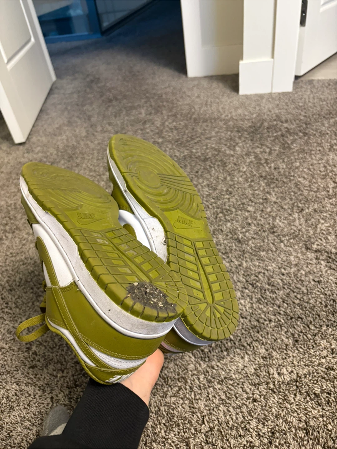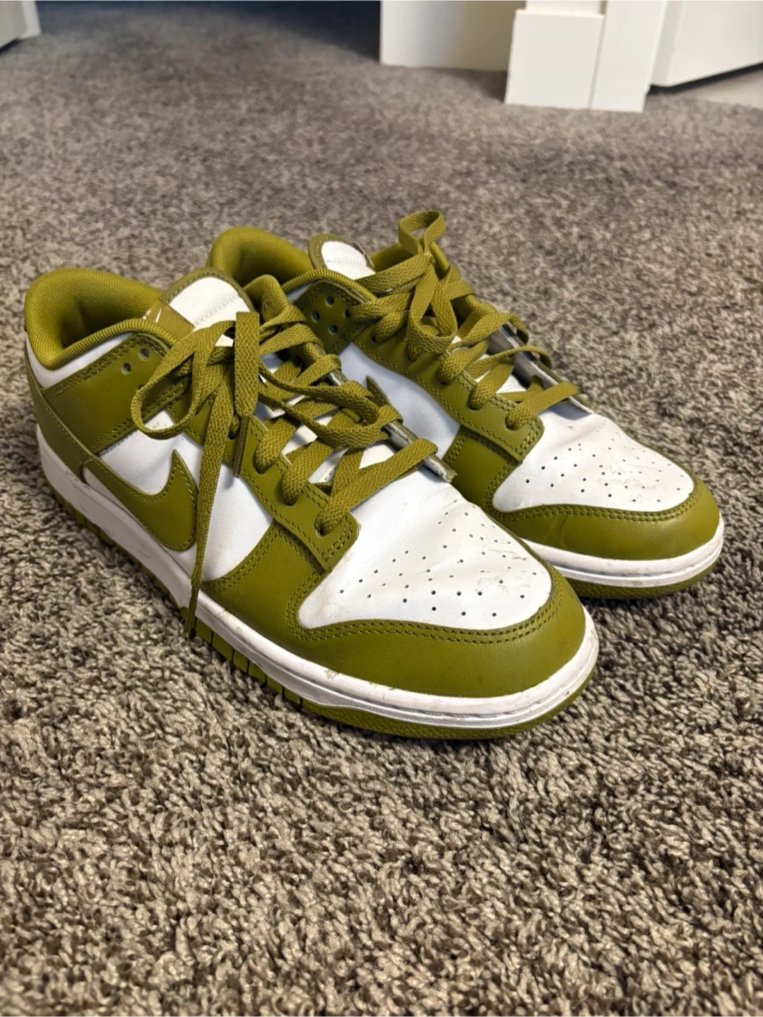 Lightly worn Nike dunk low Pacific Moss selling for $50, on StockX new for $82