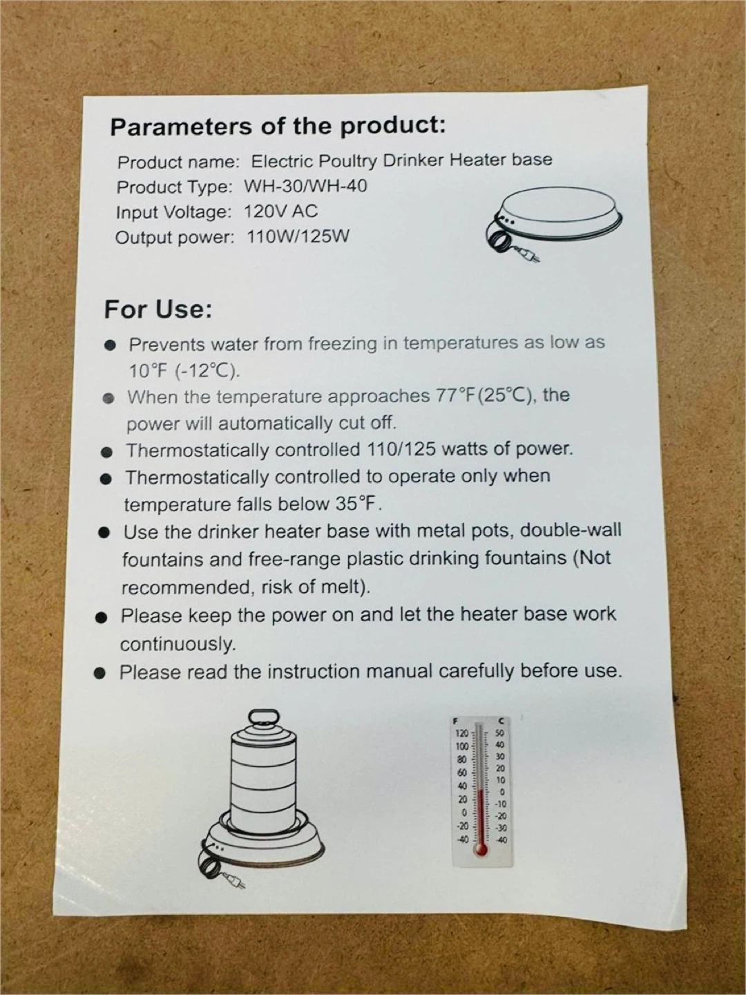Keep your flock’s water ice-free all winter long with the Tiflev 125 W Poultry Drinker Heater Base.