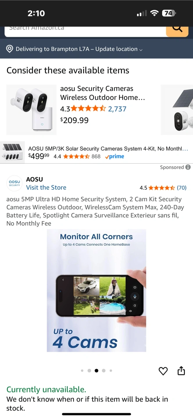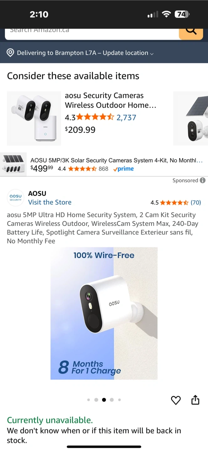 15Selling an AOSU 5MP Ultra HD Home Security System. It's a 2 Cam Kit for Wireless Outdoor use. Features include WirelessCam System Max and 240-Day Battery Life. It also has a Spotlight Camera and is suitable for Surveillance Exterieur sans fil. It's 100% Wire-Free!