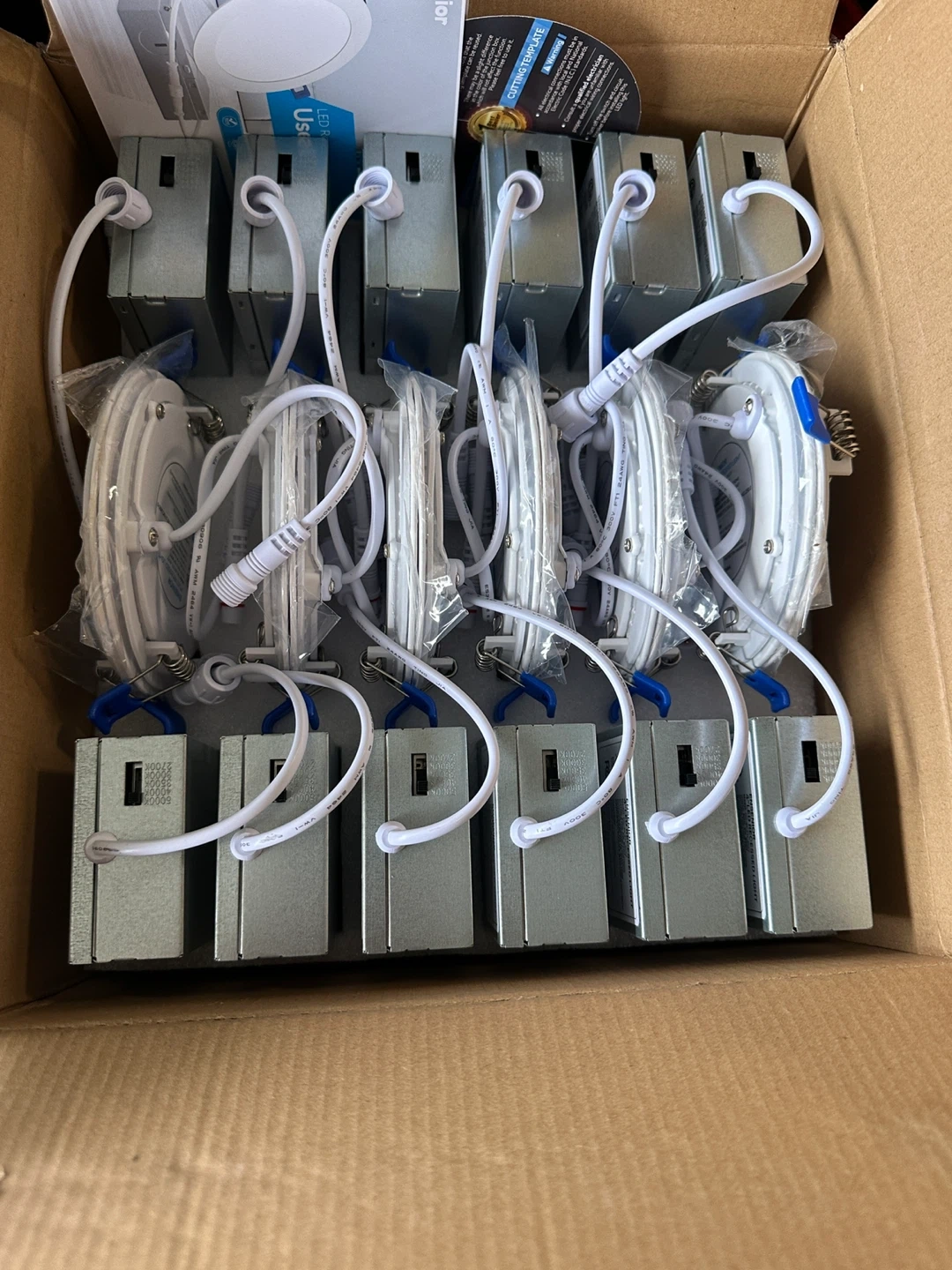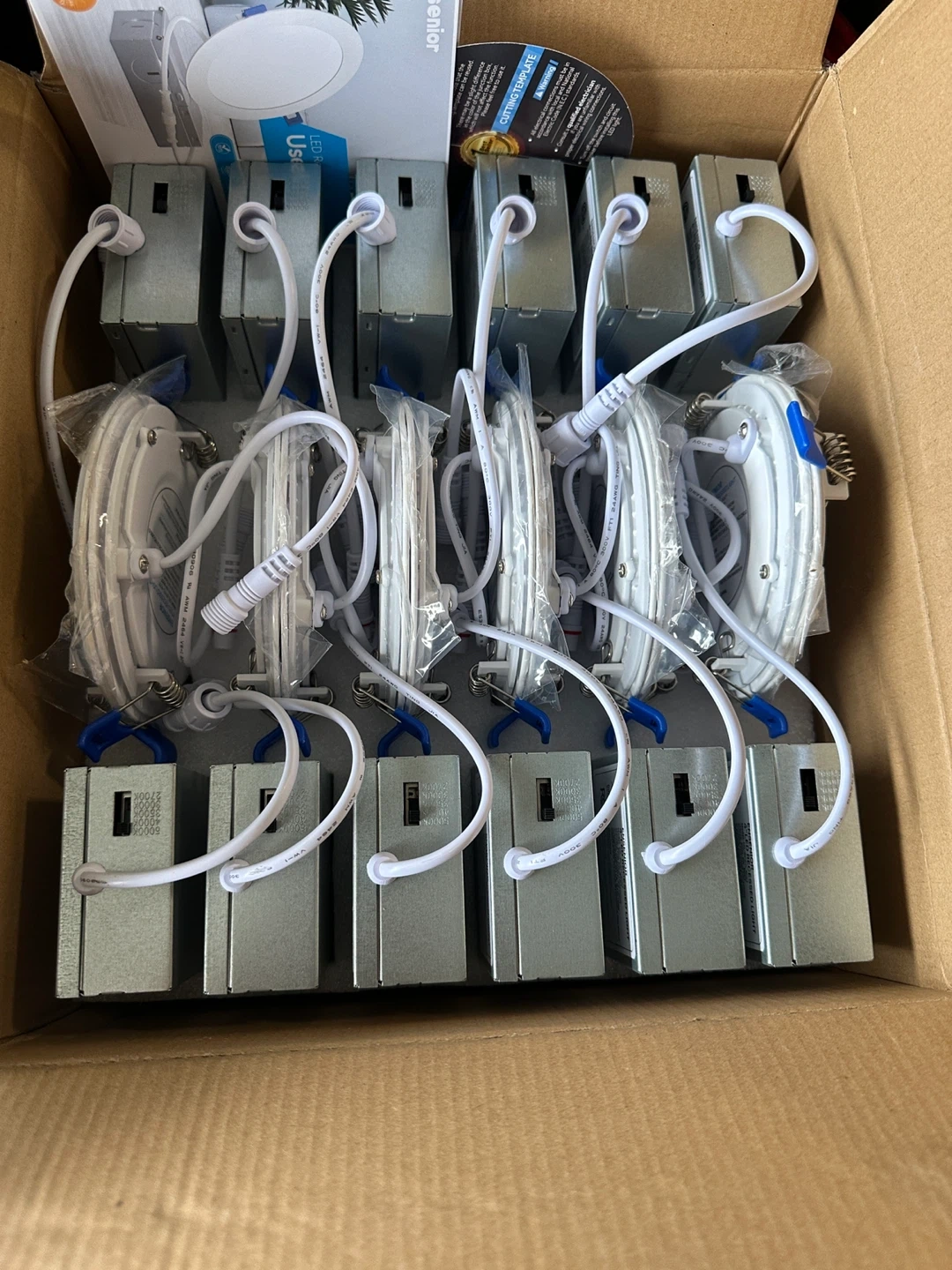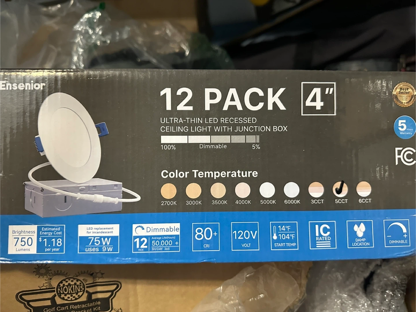 15Selling a brand new, unopened 12-pack of Ensenior 4" ultra-thin LED recessed ceiling lights. These lights are dimmable and come with a junction box. They have adjustable colour temperature from 2700K to 6CCT. They are 750 Lumens and 75W. Perfect for enhancing your life with perfect lighting!