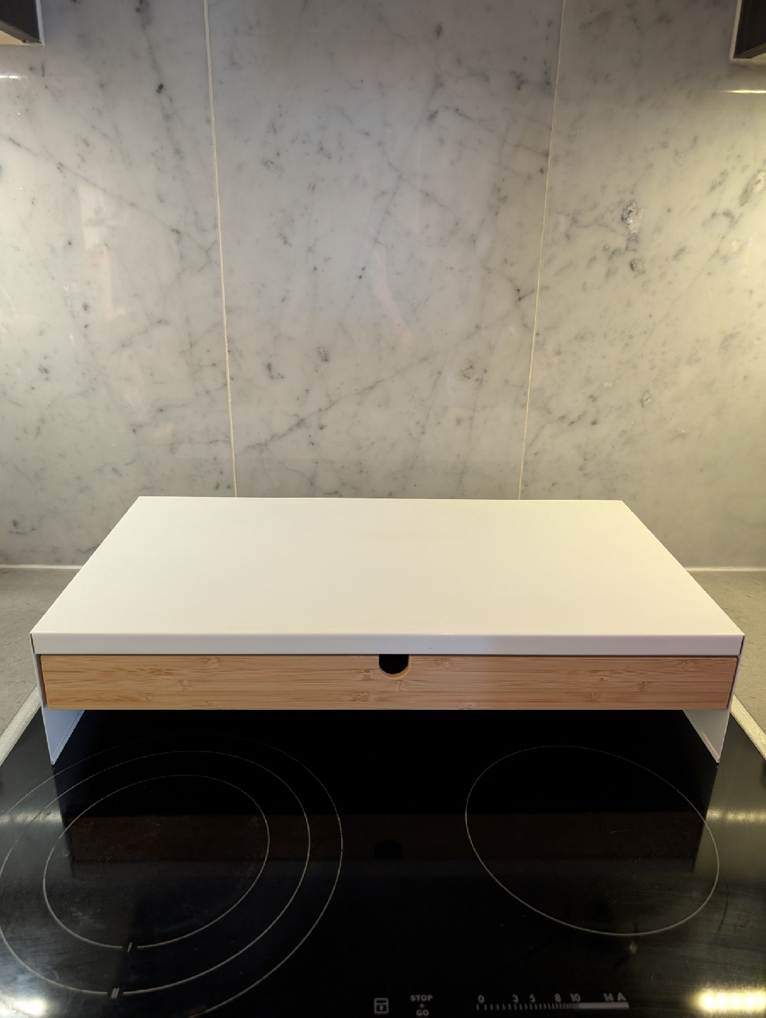Selling an IKEA Elloven monitor stand with a drawer in white! It's perfect for raising your monitor to a comfortable viewing height and keeping your desk organized. Originally bought for $29.99