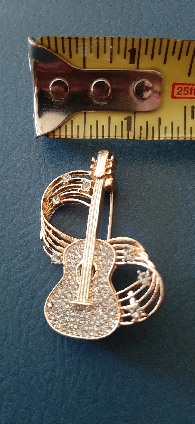 Buy & SellGuitar and Music Notes BroochGuitar and Music Notes Brooch$10Guitar brooch with music notes. It's gold in color and features rhinestones. The brooch measures approximately 1.5 inches.WHERE TO MEETCheck LocationView MapSELLERChrisJefferson Park928 reviews0 chats·0 favorites·31 viewsSEND CHAT TO SELLERHi Chris! I’m interested in your listing.Hi Chris! I’m interested in your listing.Get the Karrot app to chatSign In to chat