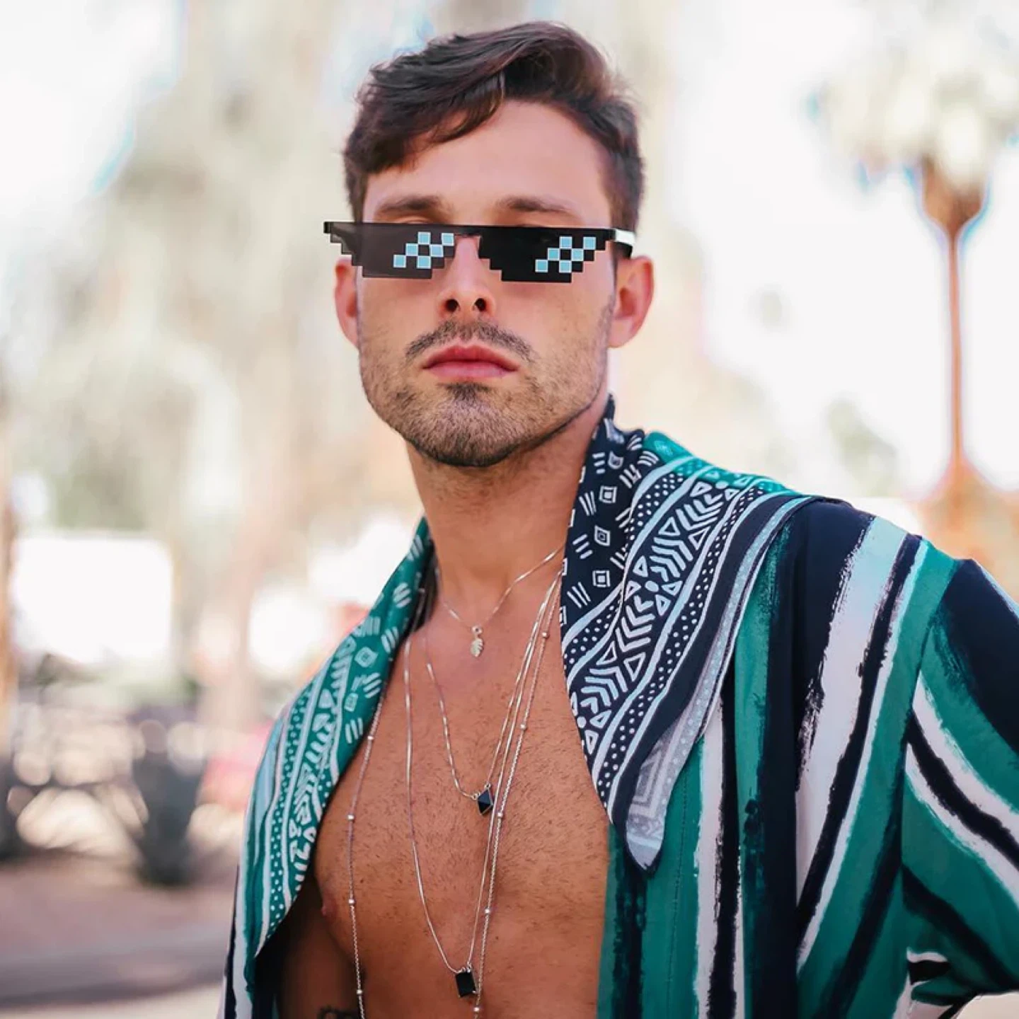 Get ready to turn heads with these iconic Thug Life pixel sunglasses! These shades are perfect for adding a touch of humor and retro gaming style to any outfit. Whether you're hitting up a party or just want to stand out from the crowd, these sunglasses are sure to make a statement