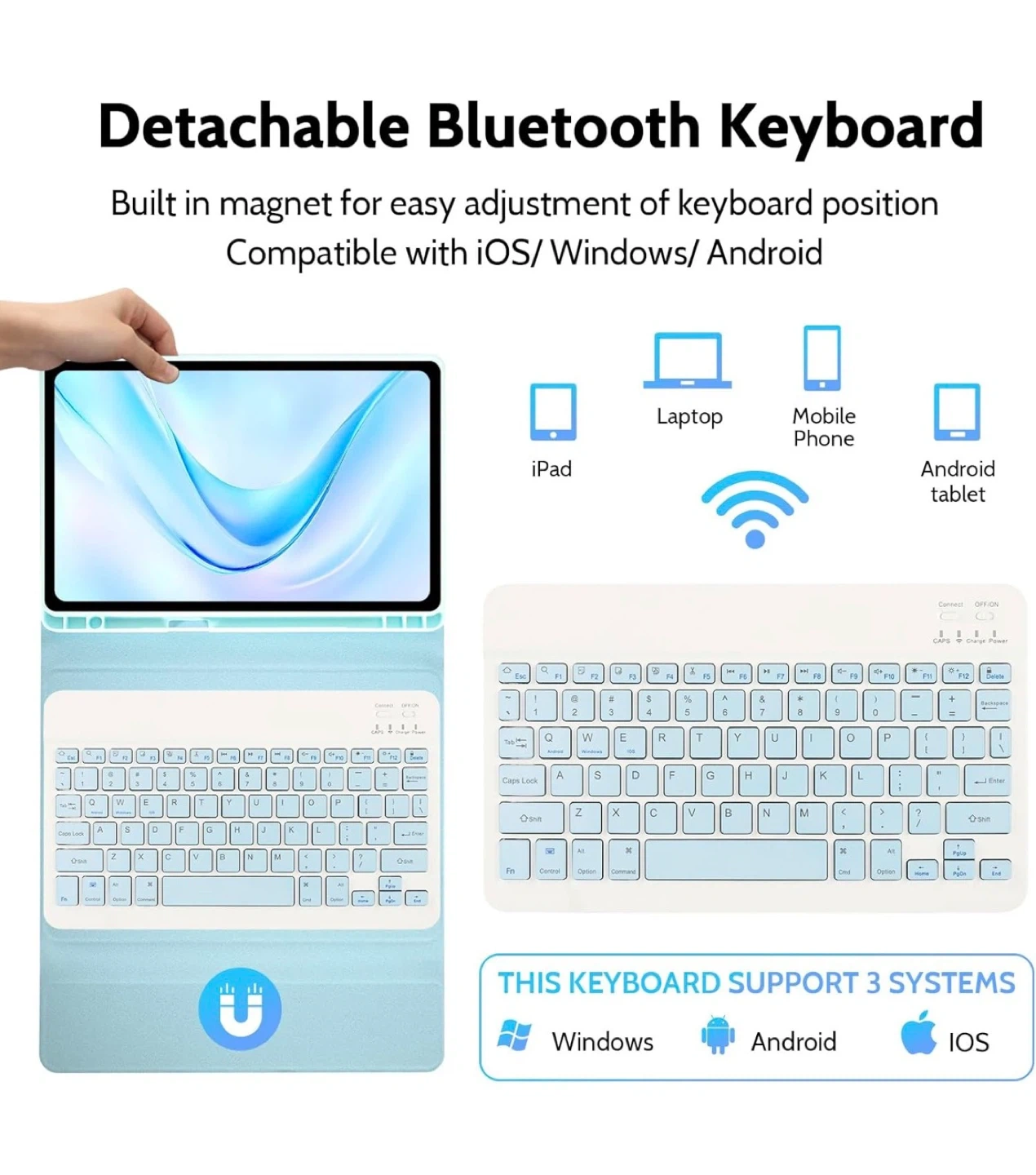 Light Blue Detachable Bluetooth Keyboard Case with Mouse