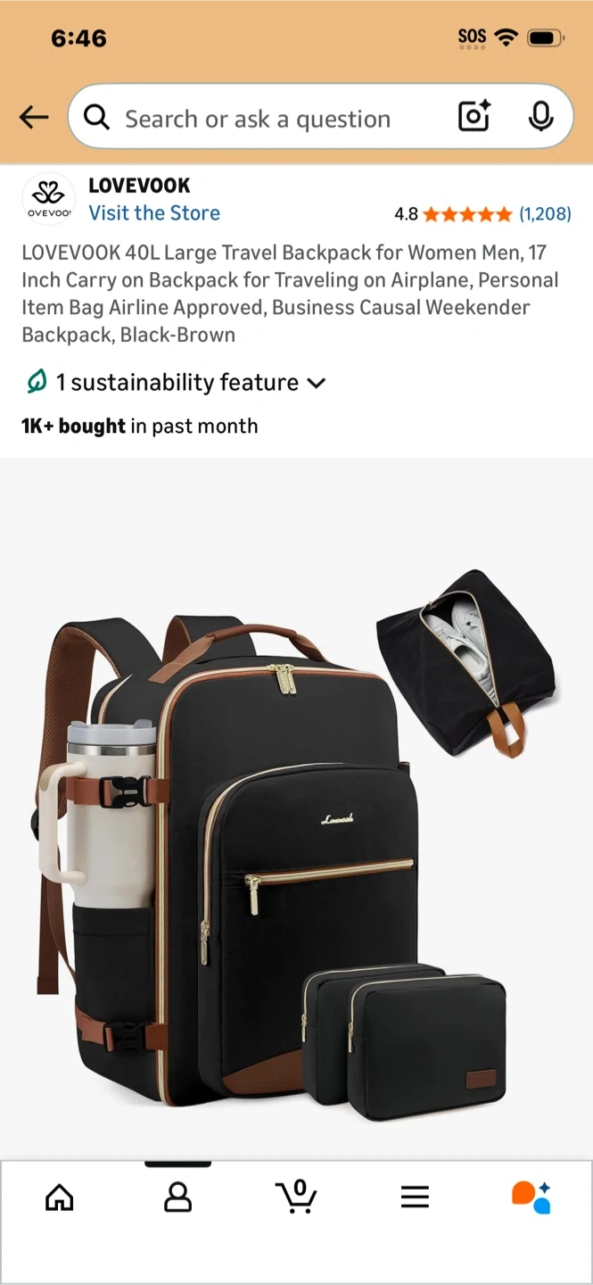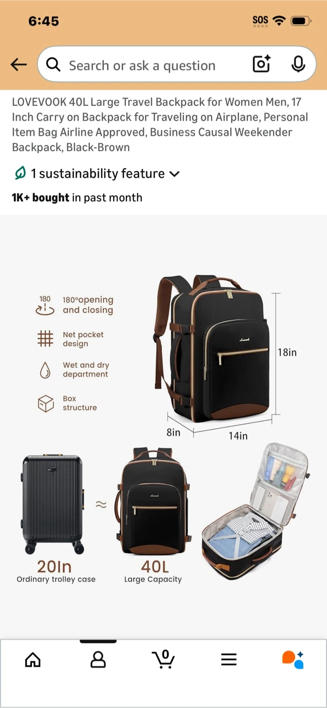LOVEVOOK Large Travel Backpack ( Black - Brown )