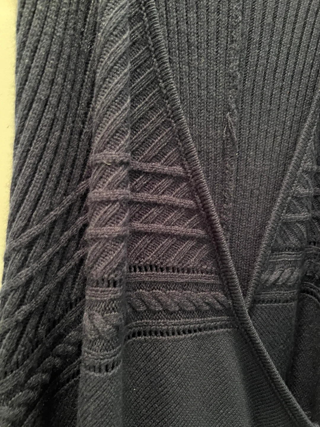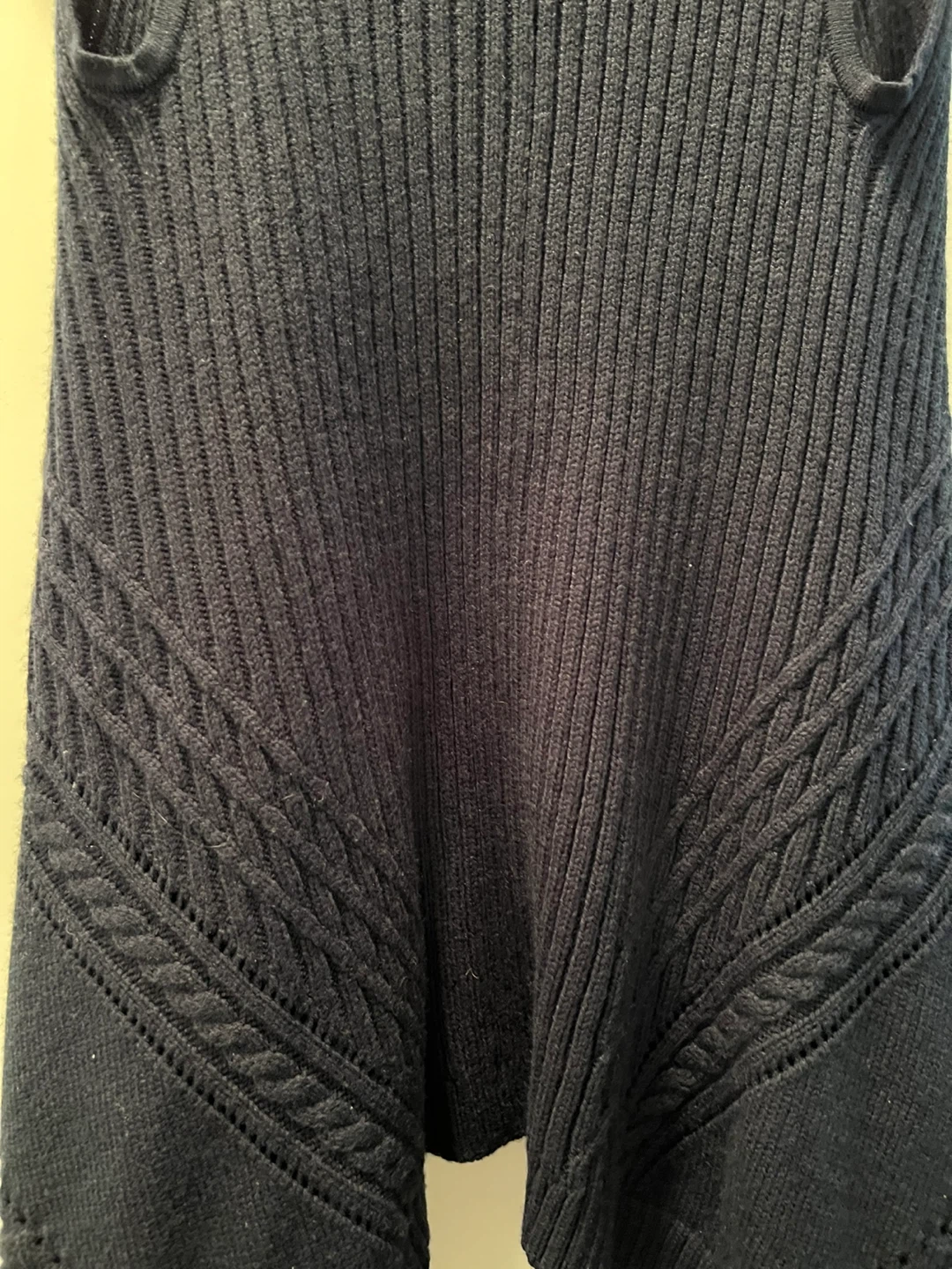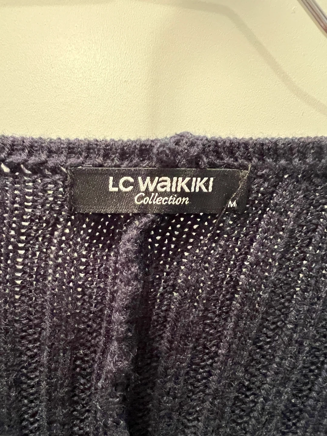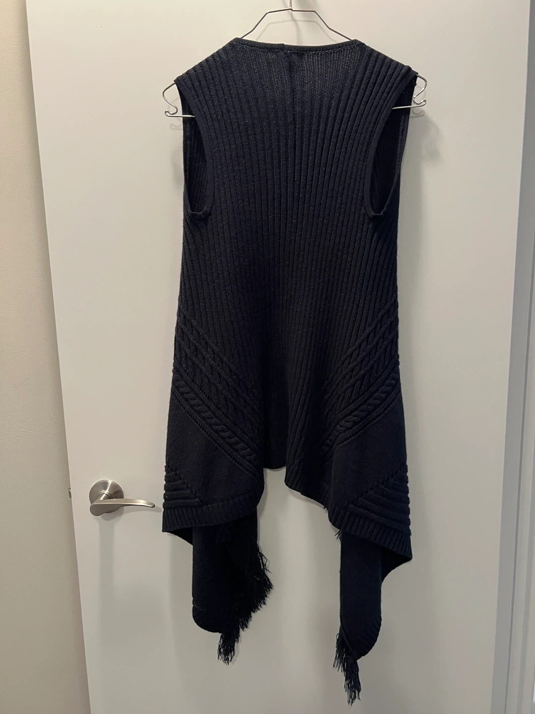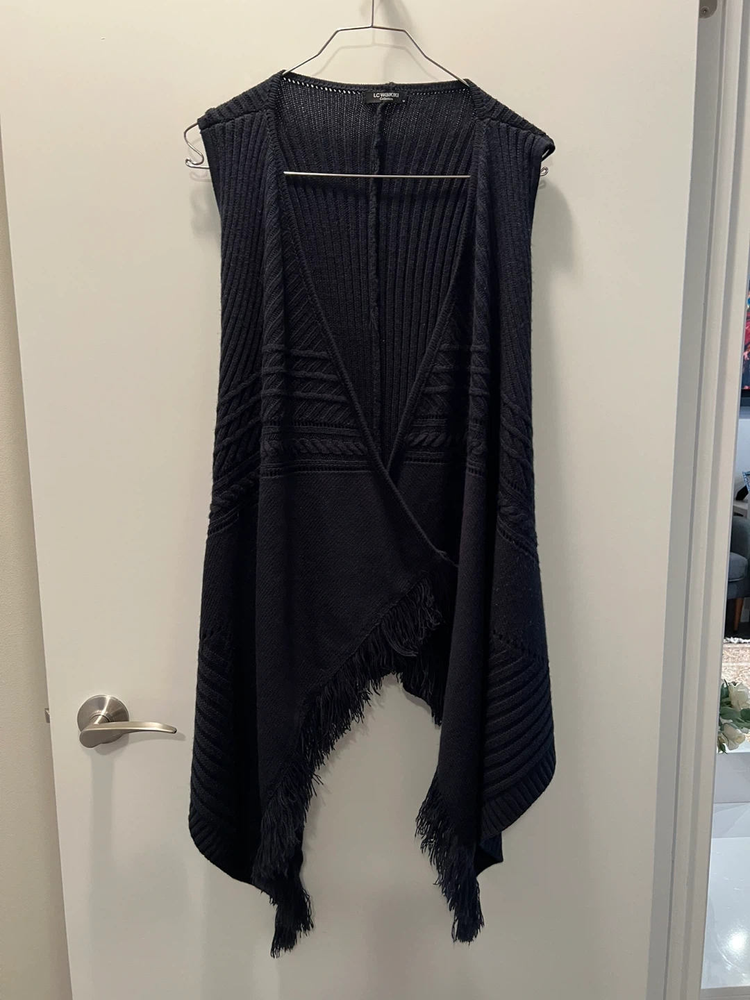 LC Waikiki Collection navy blue knit vest. Size medium. Features a unique asymmetrical hem with fringe details.