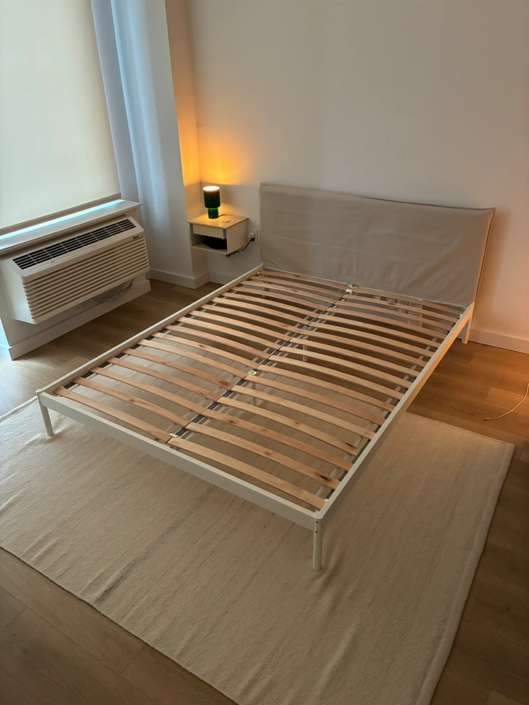 Ikea KLEPPSTAD bed with a fabric-covered headboard, comes with slats that are 50 bucks on its own. Have only been used for a couple months, in like new condition. Light weight but very sturdy and doesn't squeak at all. Local pick up only please.