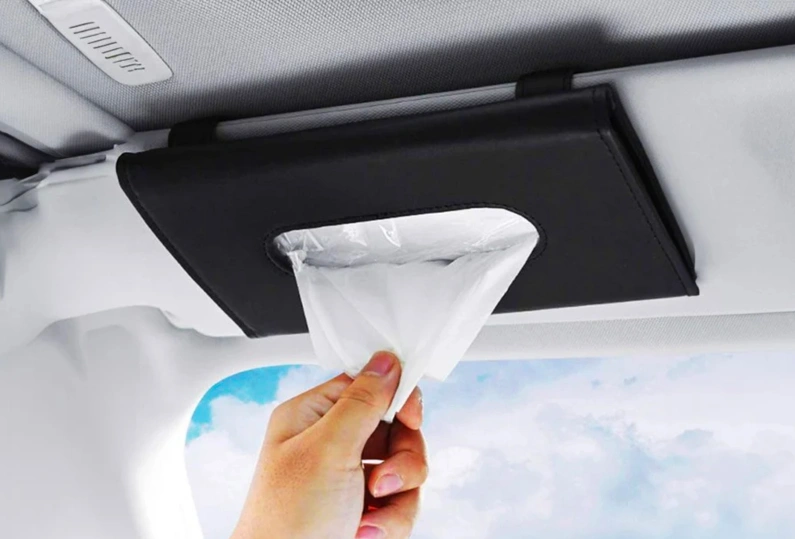 Keep your car tidy with this universal car sun visor tissue box holder! This handy accessory is in excellent condition and ready to use. It clips easily onto your car's sun visor, keeping tissues within easy reach while you drive.
