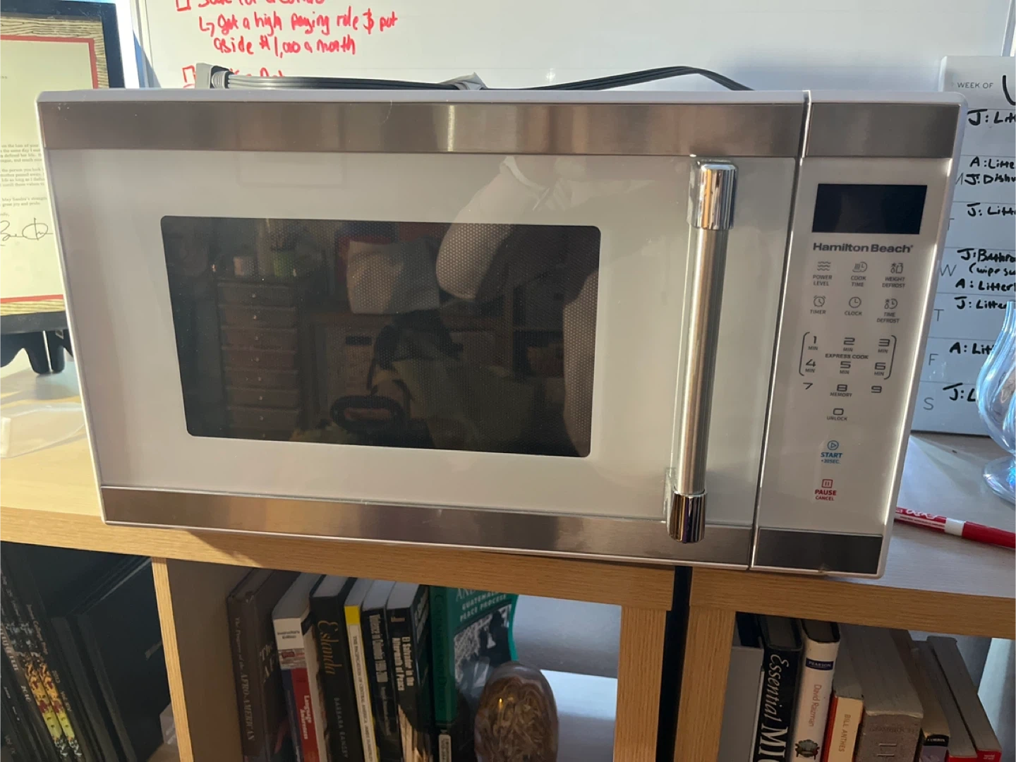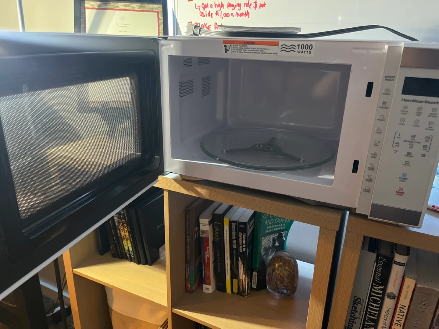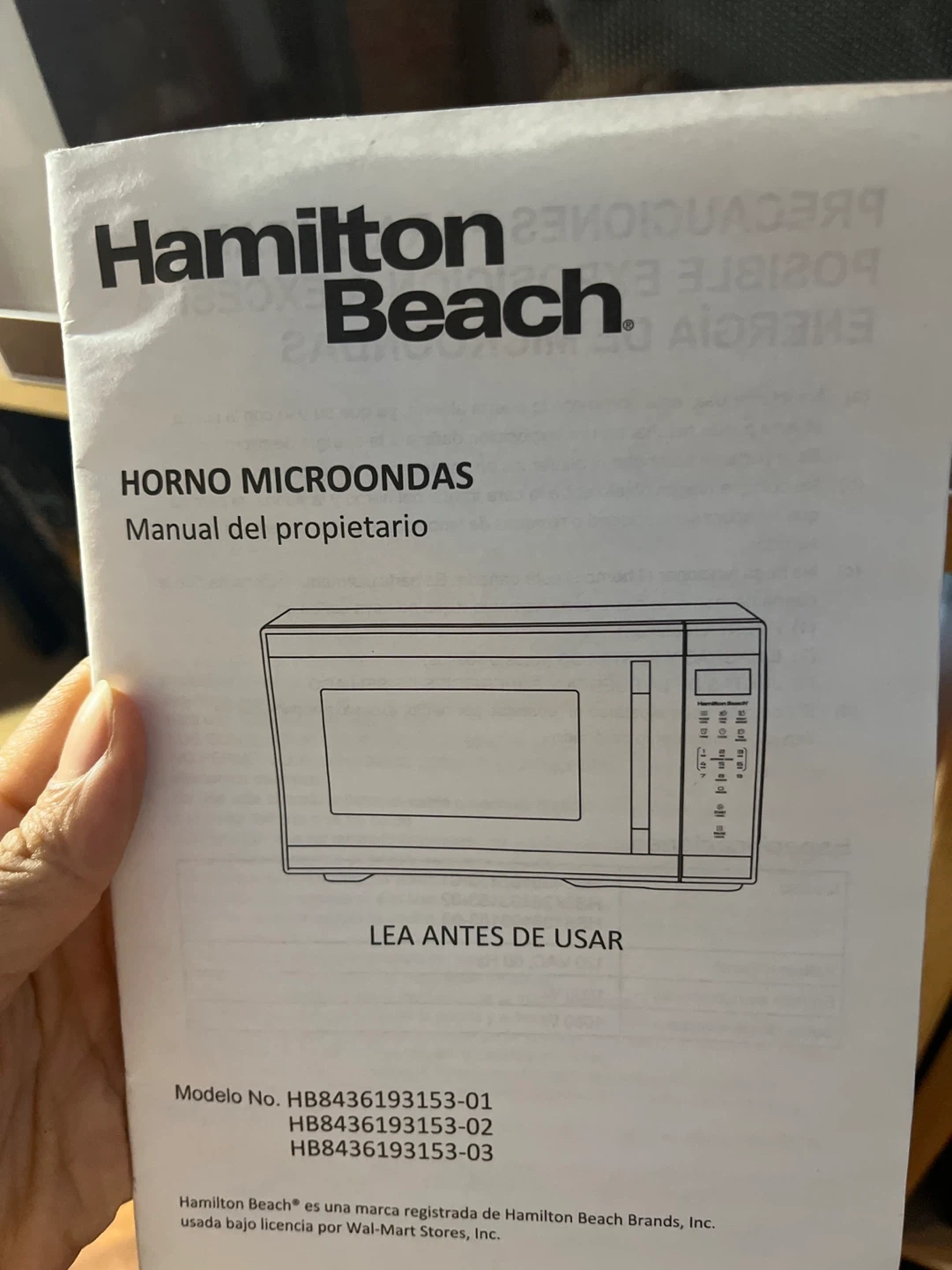 Brand new Hamilton Beach 1000-watt microwave. Includes the owner's manual. Purchased for my new place not knowing my landlord would be providing a new microwave.