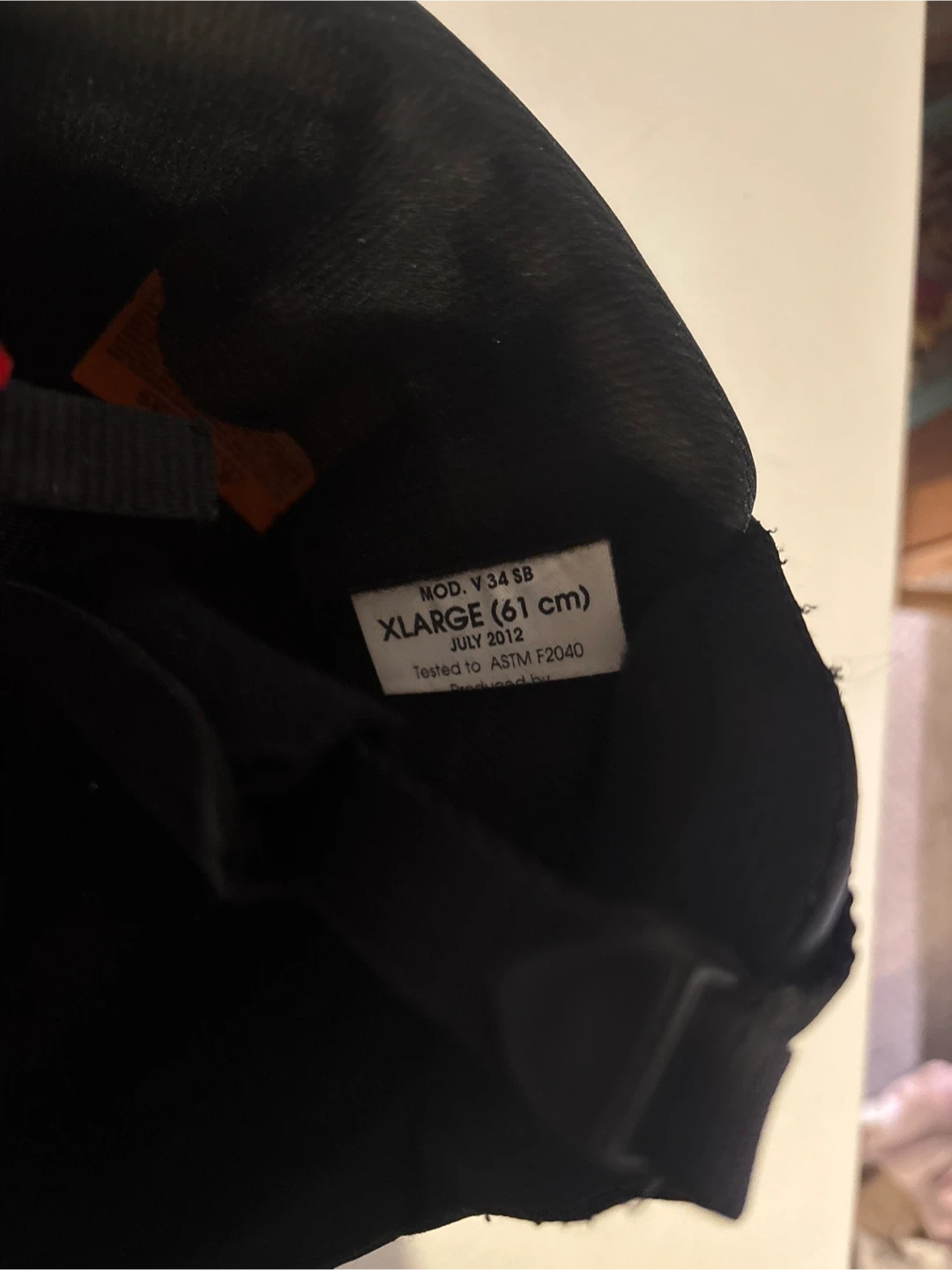 Bolle ski helmet in black. It's an XLarge size, fitting 61cm. Tested to ASTM F2040 safety standards in July 2012. Includes a black drawstring bag for storage.