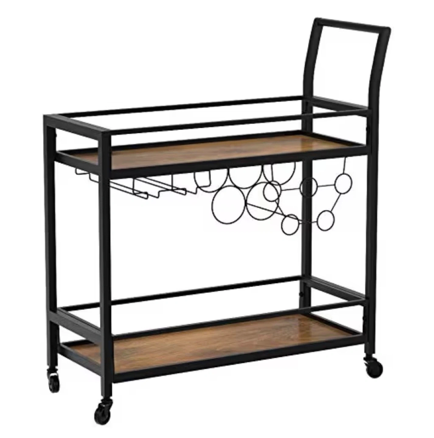 Industrial Style Bar Cart with Wine Glass Rack