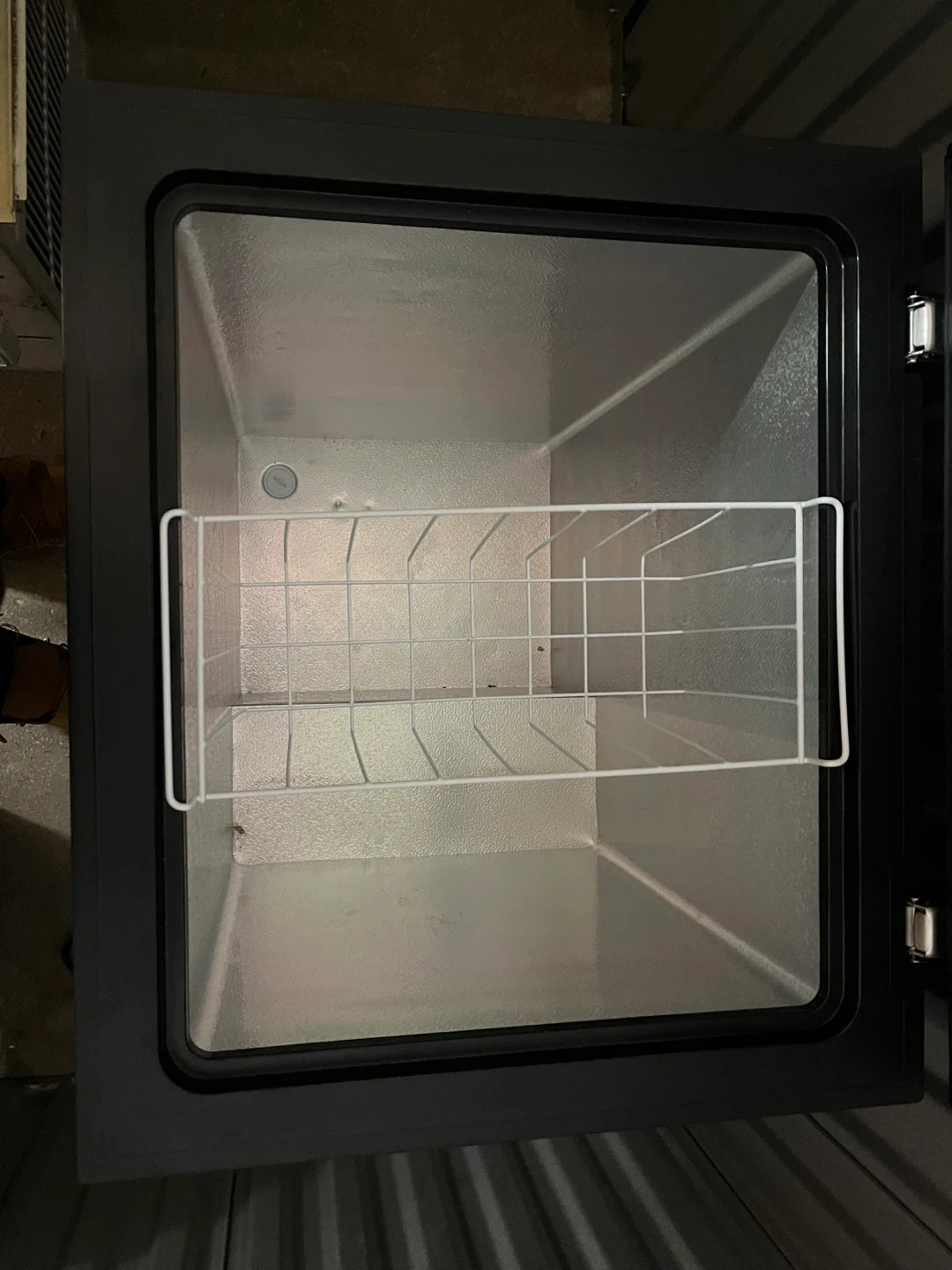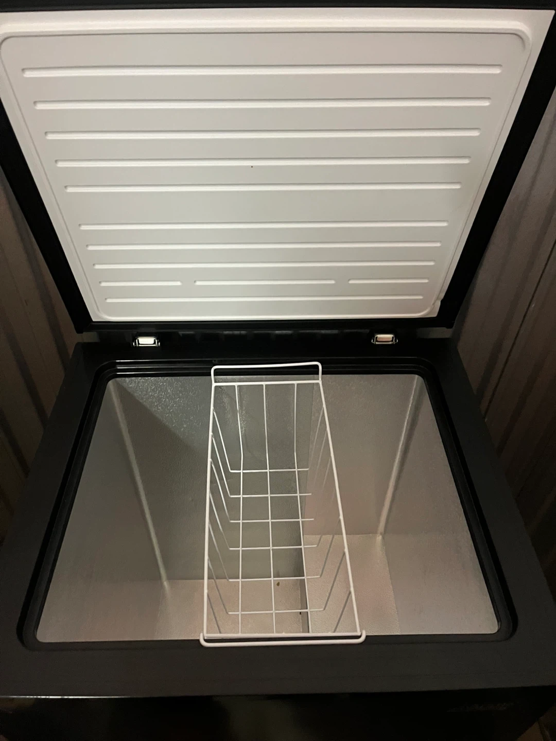 Arctic King chest freezer. Includes removable wire basket for organization. Perfect for storing extra frozen goods!