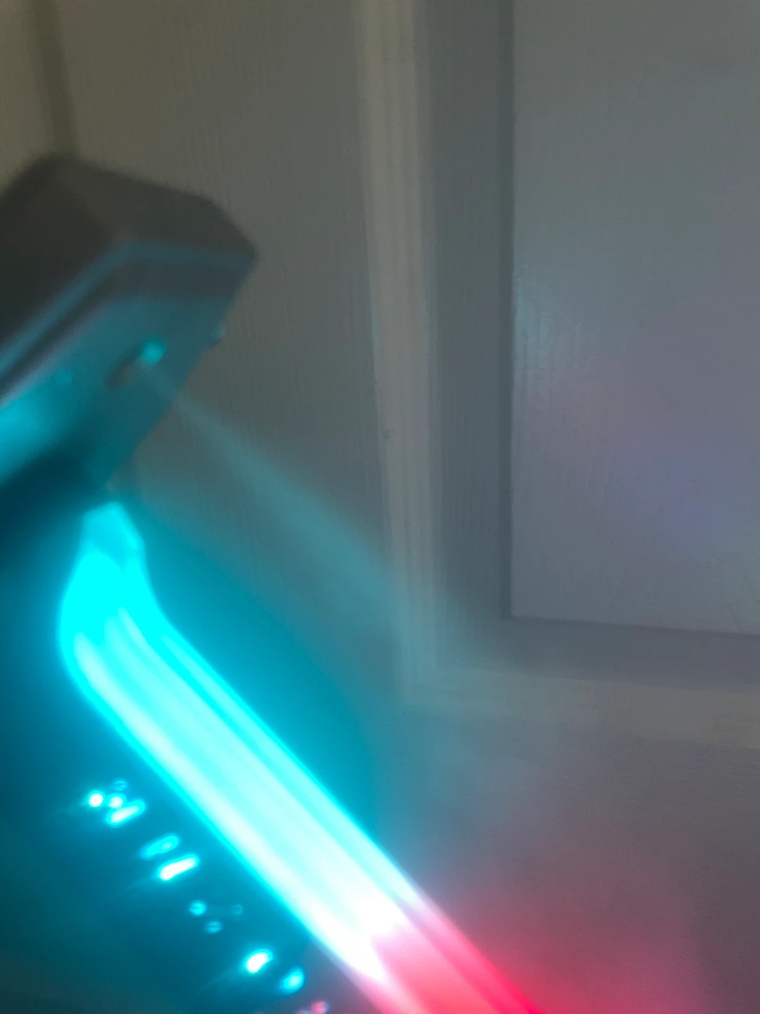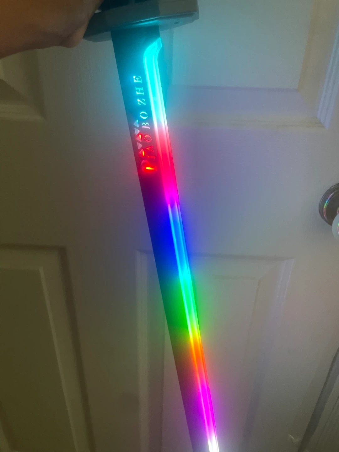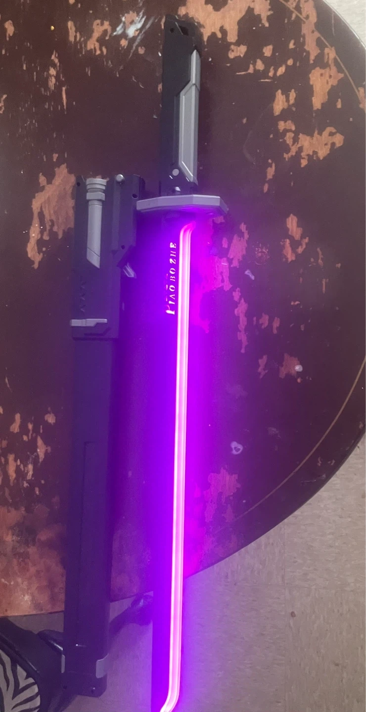 This lightsaber replica features a sleek black hilt and a vibrant LED blade that changes color. It's perfect for any Star Wars fan's collection. The hilt is made of durable plastic.