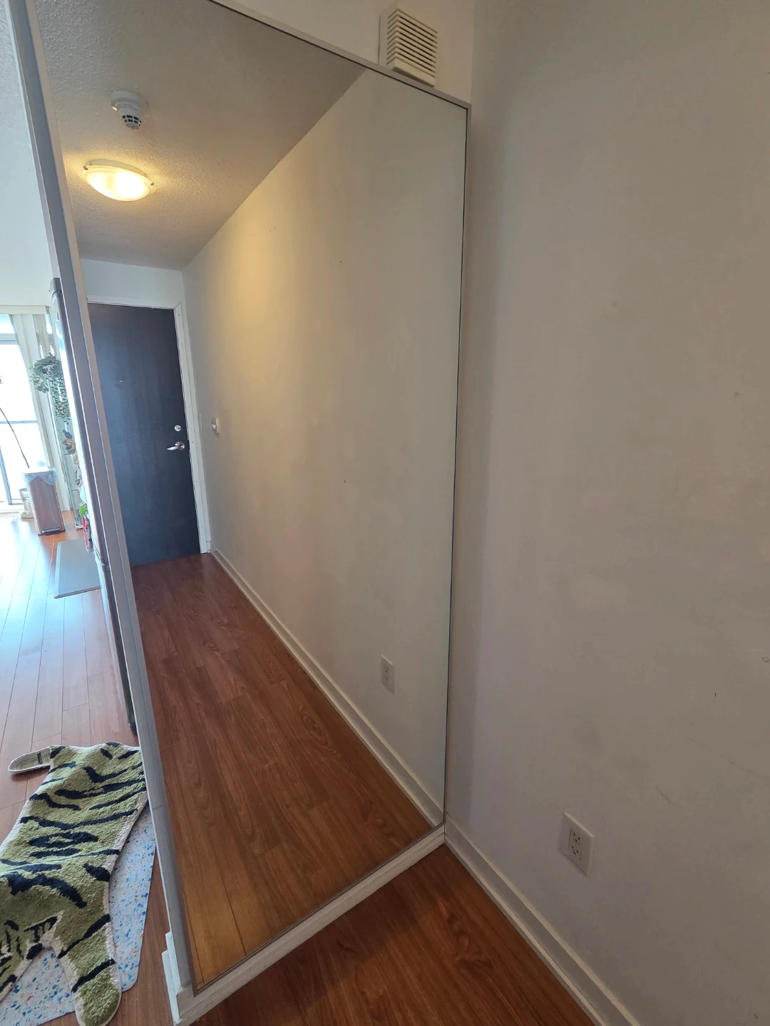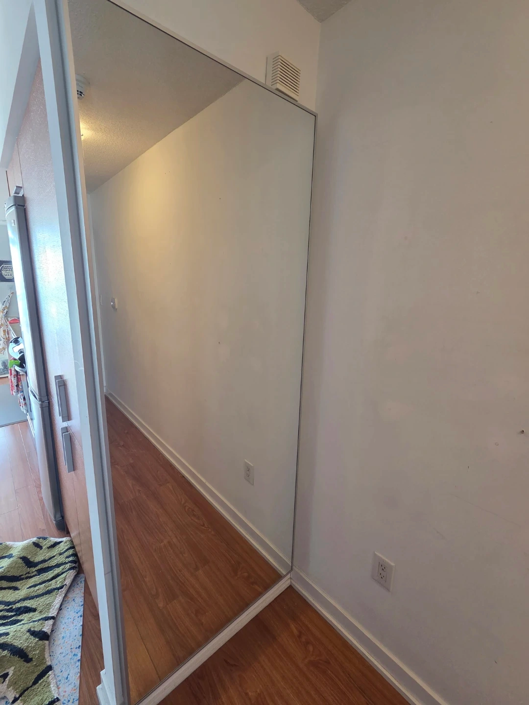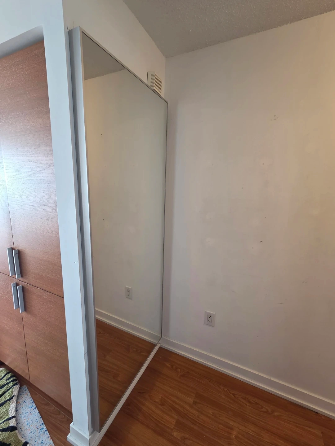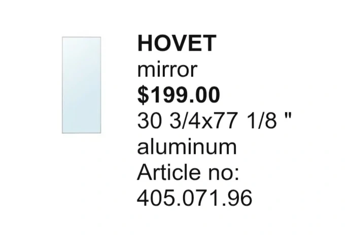 HOVET mirror with an aluminum frame. Dimensions are 30 3/4 inches wide by 77 1/8 inches high. It's a full-length mirror. Pick up only