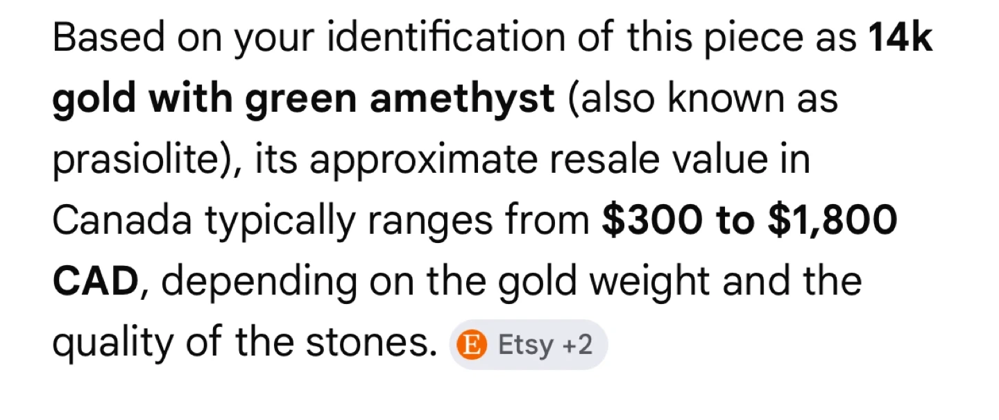 Google AI says the resale value of similar vintage pieces is between $300 and $1,800, HOWEVER. There are some factors to consider.