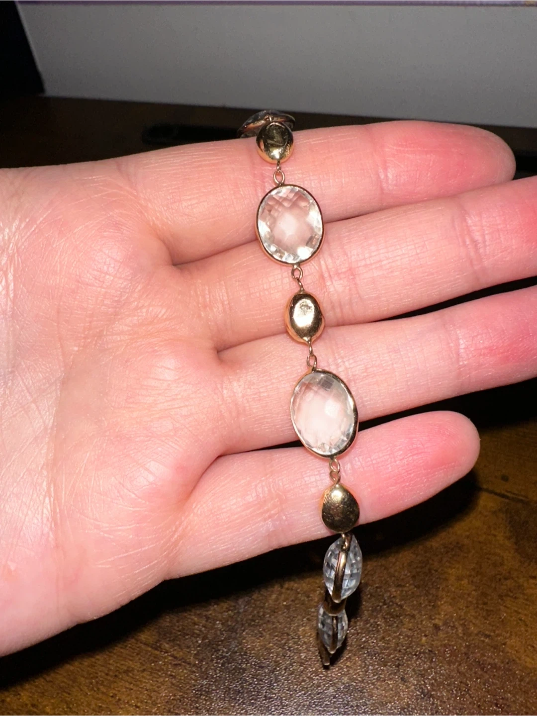 1. The bracelet is broken with a bandaid fix. It seems fine, but it needs a jewelry to look at it because one of the links is broken so I’m afraid it will fall off. It was repaired once before, but it broke in the same place about a year later. The repair was $60, so we’ll keep this in mind because it definitely needs a jeweller to look at it.