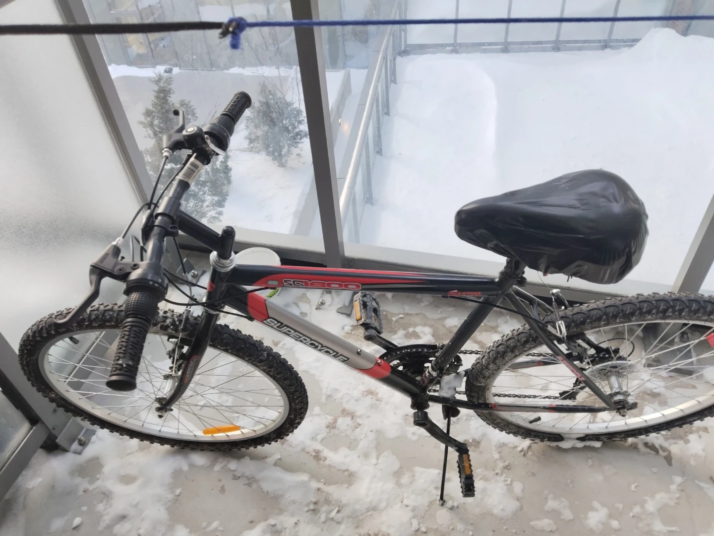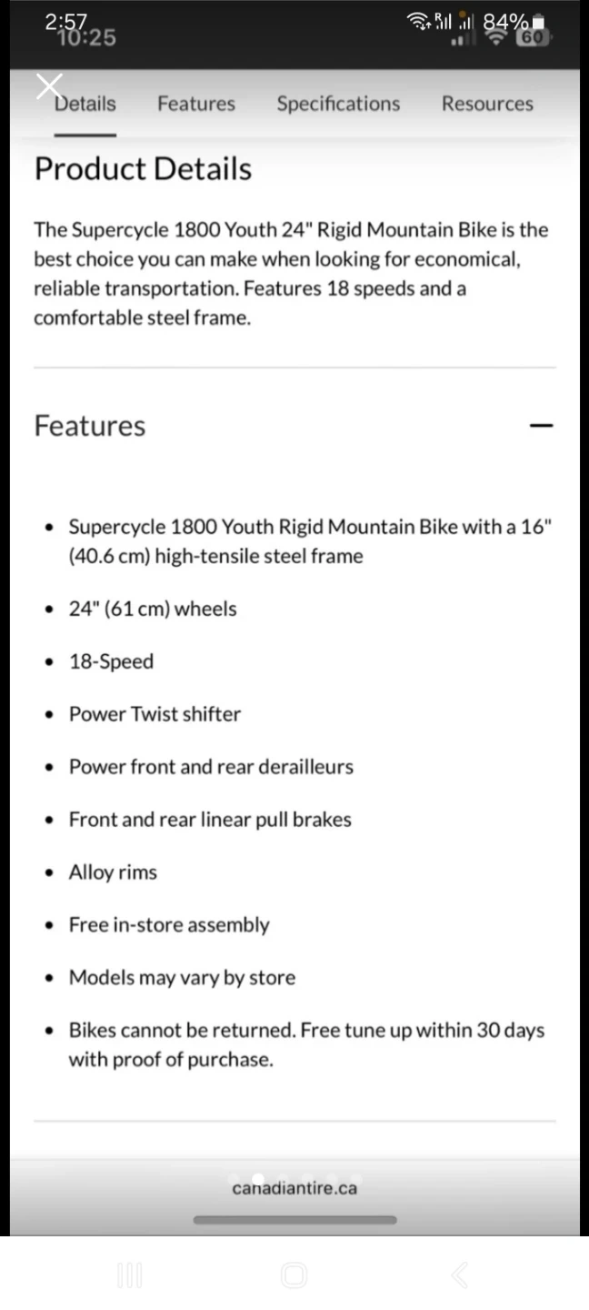 This is a Supercycle 1800 Youth 24" mountain bike with 18 speeds. It features a steel frame and alloy rims. It's great for trail riding or just getting around town!