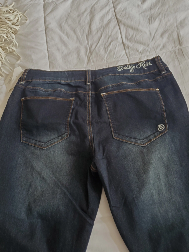 These Indigo Rein jeans are a size 13 and have a dark wash. Cuffed bottom and fit above the ankle. They're so soft, you'll wear them like a second skin! The tag says they're soft and have stretch. Originally bought for $19.99