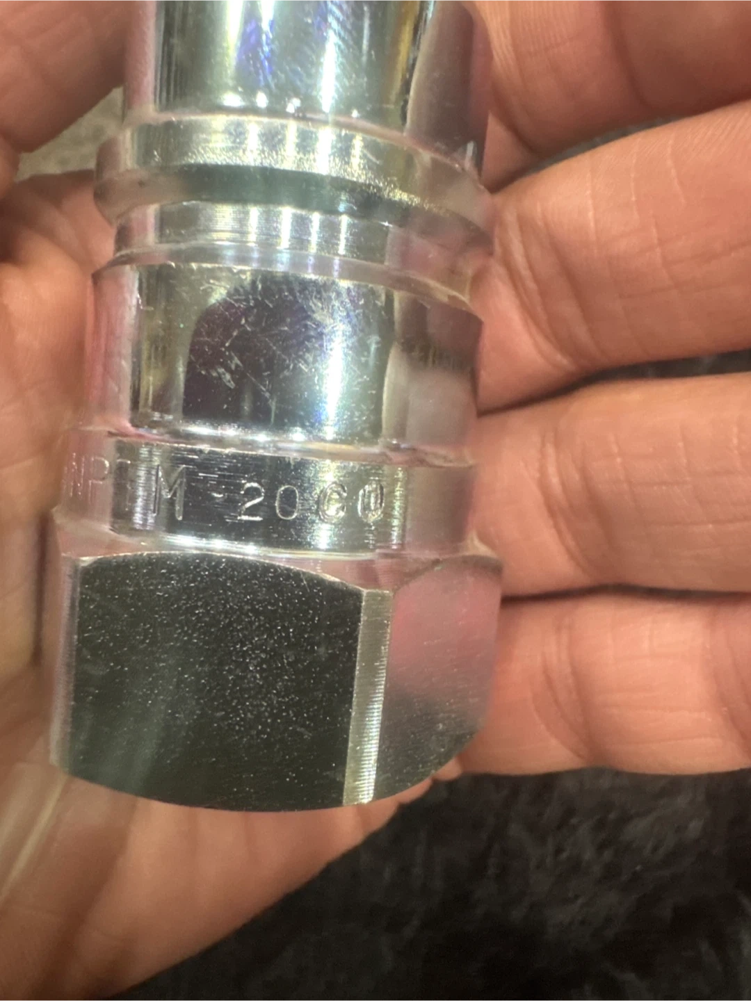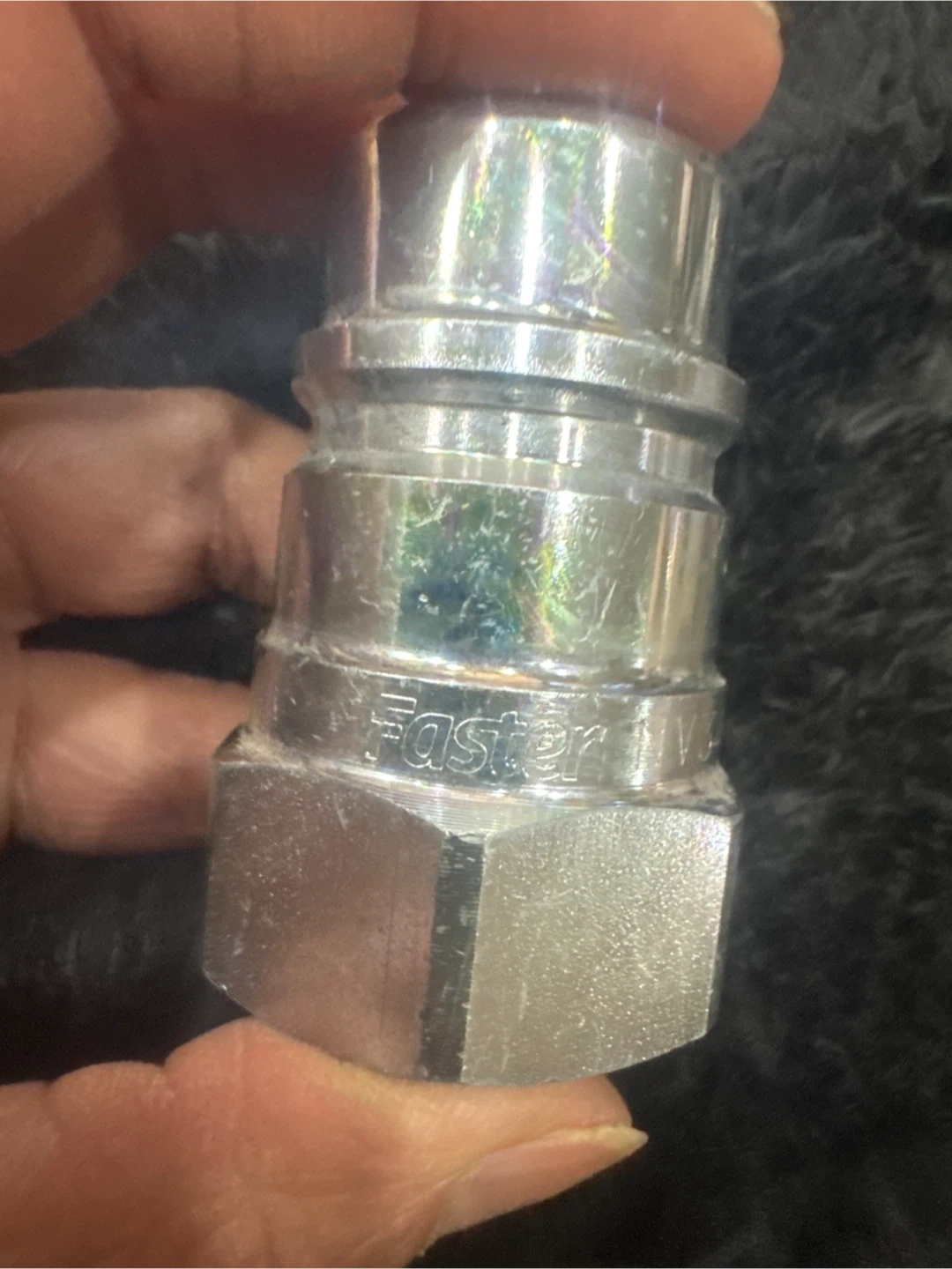 This is a Faster hydraulic quick coupler. It's a NPTM-2000 model. It's made of durable metal and is designed for industrial use.