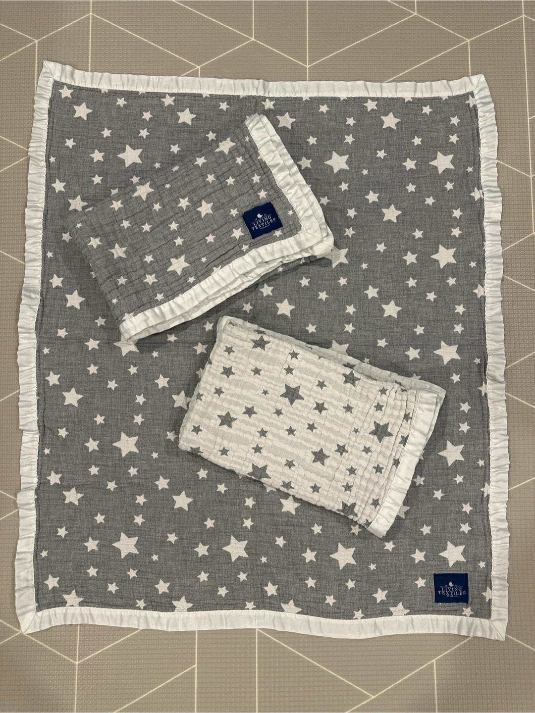 Living Textiles Reversible Star Blanket x 3 - White/Grey