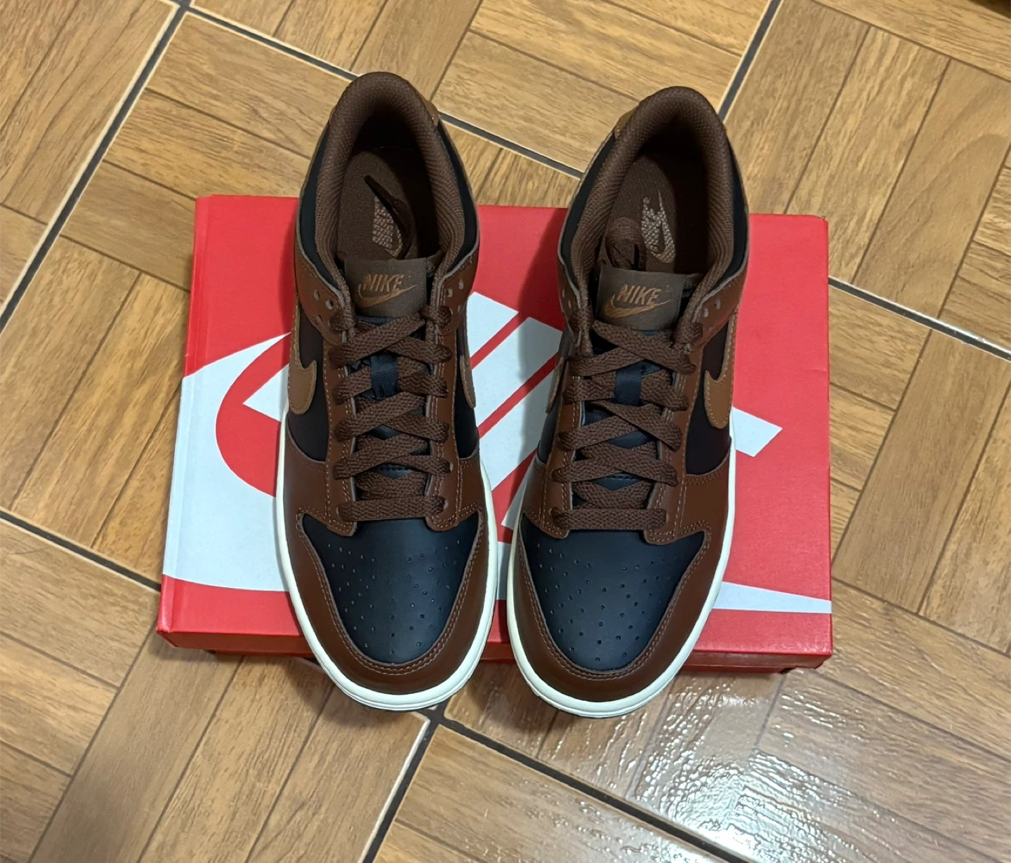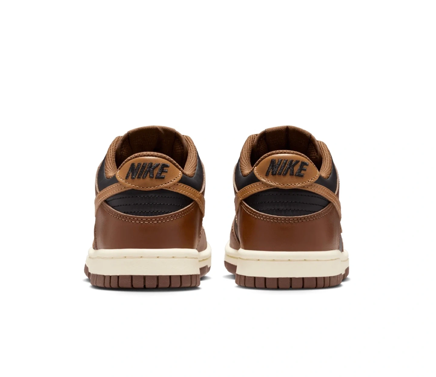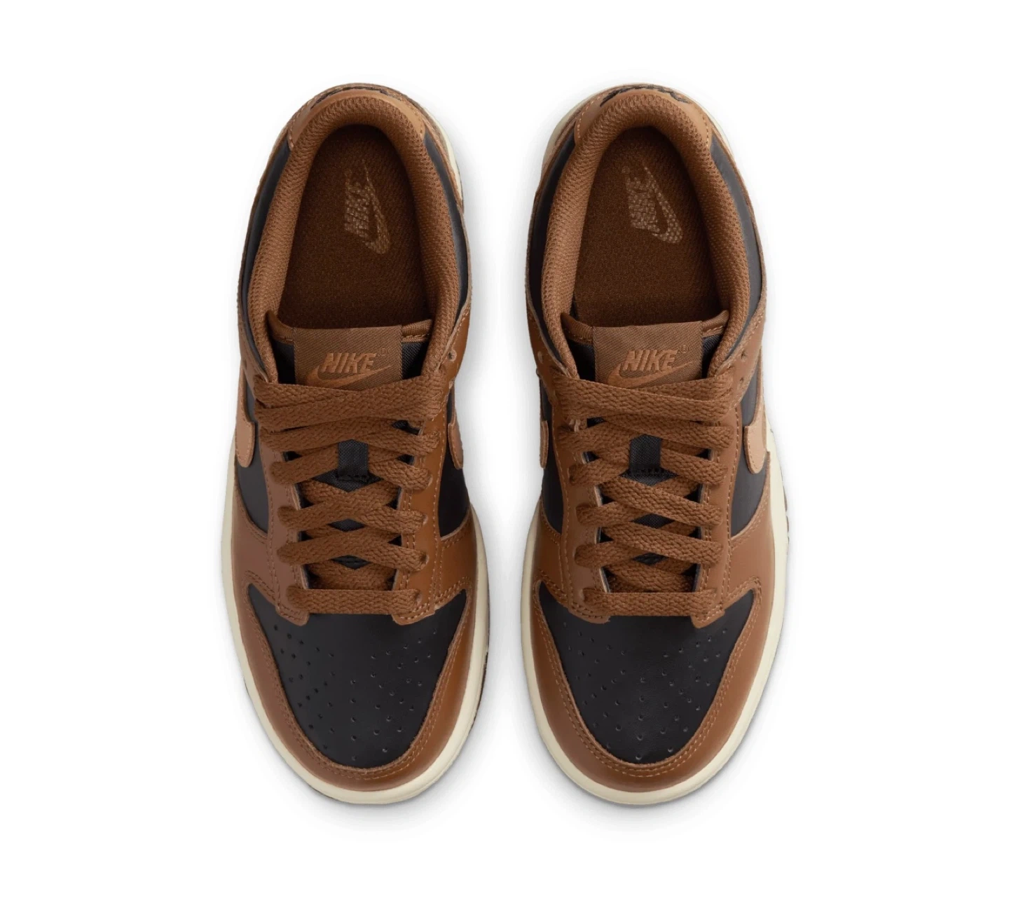 These Big Kids' Nike Dunk Low sneakers are in a classic brown and black colourway. They come with the original box and have a leather and synthetic upper. Perfect for everyday wear!