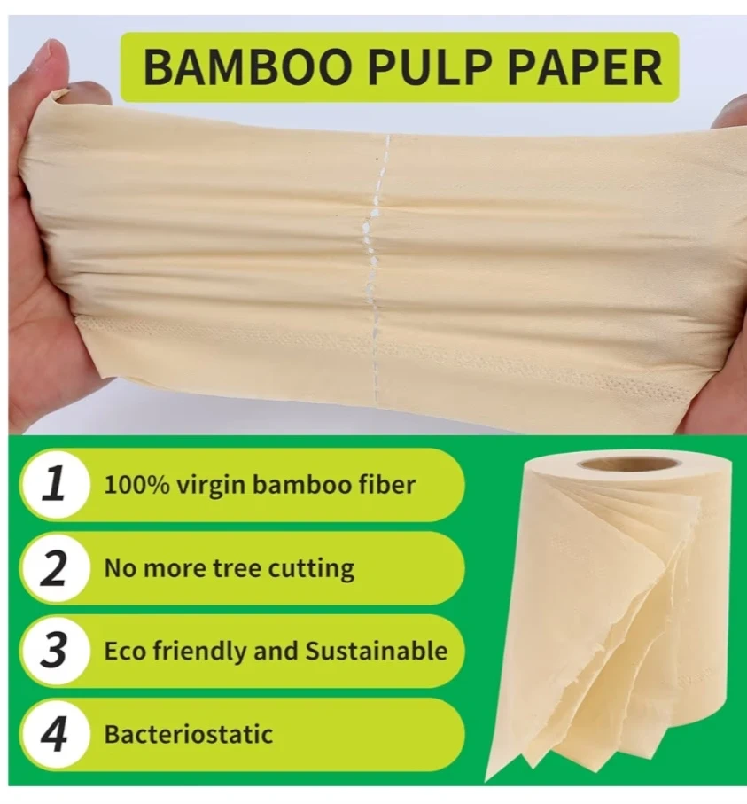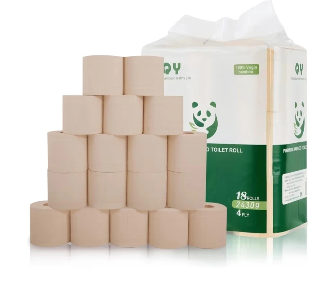 ▪︎ Open Box/Package QY Natural Bamboo Healthy Life premium toilet paper. 100% virgin bamboo origin and 4-ply thickness. This package includes 12 rolls and is unbleached, sustainable, and tree-free. It's soft and strong for everyday use!
