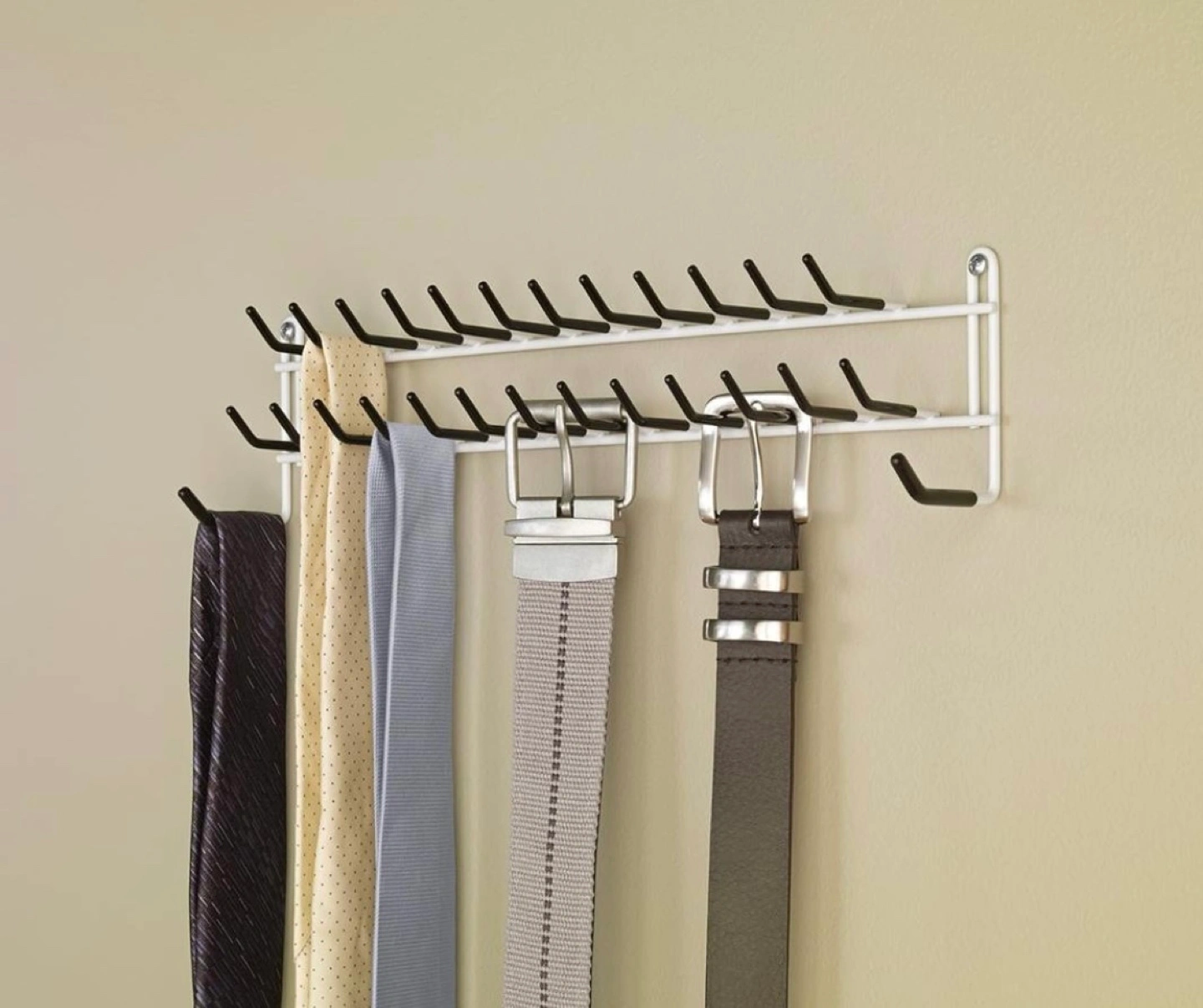 ClosetMaid’s accessories offer versatile storage solutions throughout your home, with this rack providing a tidy way to keep ties and belts neatly organized.