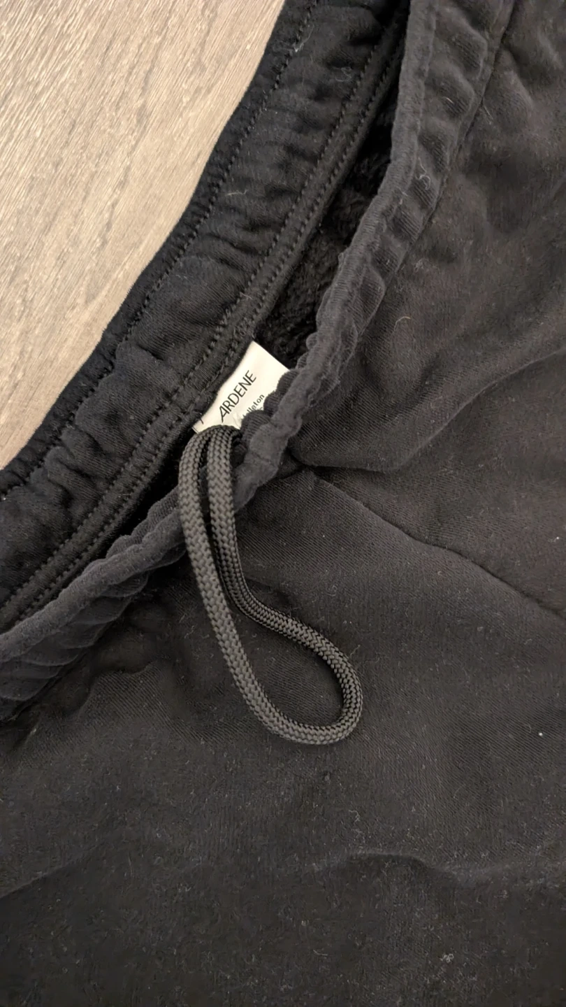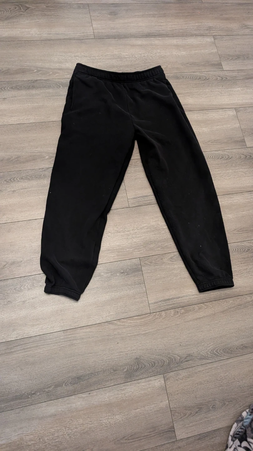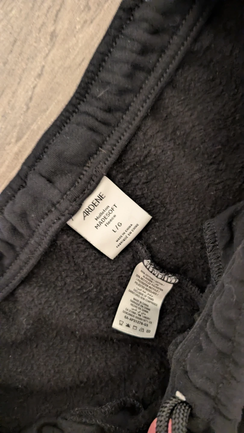 Black sweatpants from Ardene. They're made with Malisoft Madissoft fleece for comfort. Elastic waistband with drawstring closure. Size L.