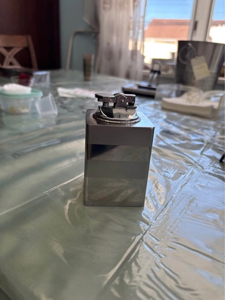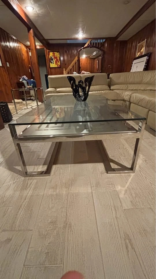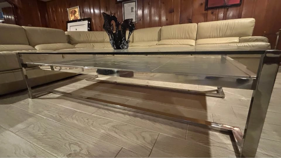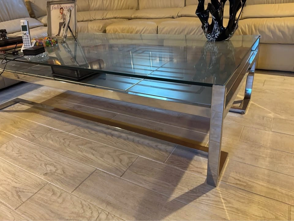 Glass & chrome coffee table + vintage table lighter