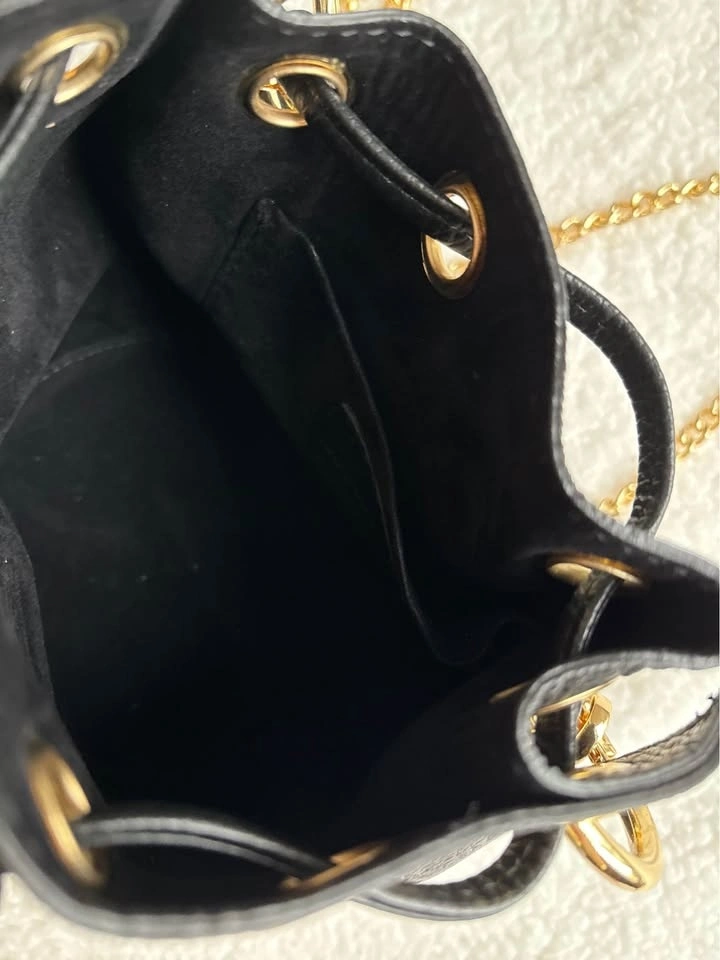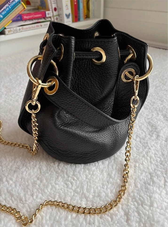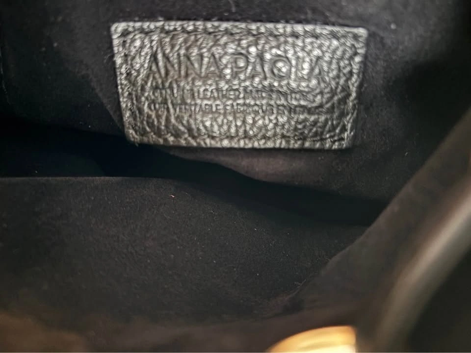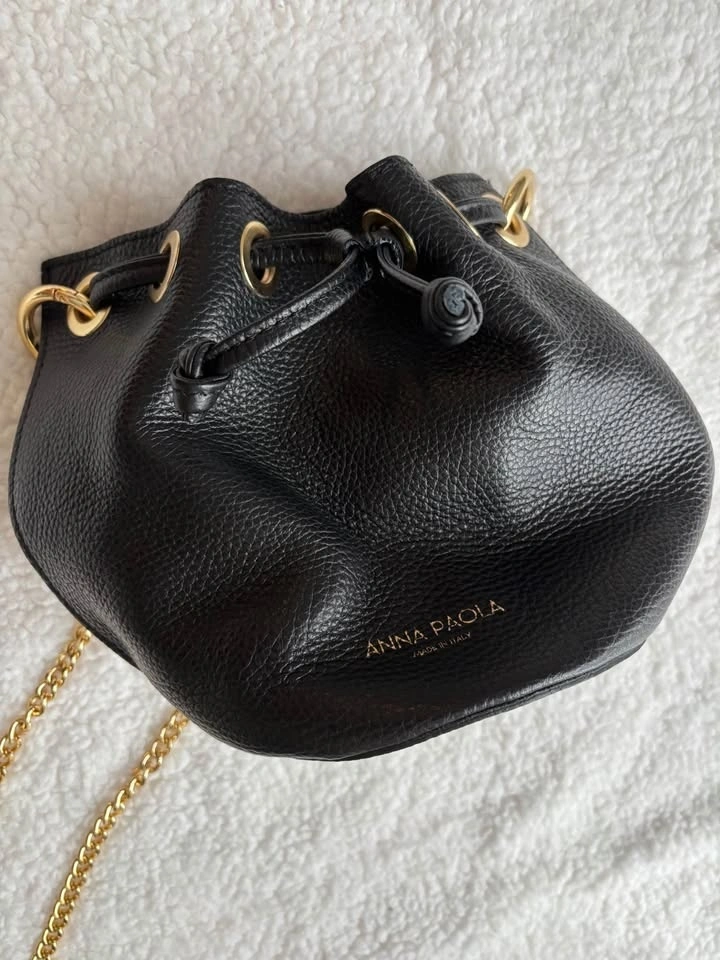 Anna Paola Black Leather Bucket Bag w/ Gold Hardware