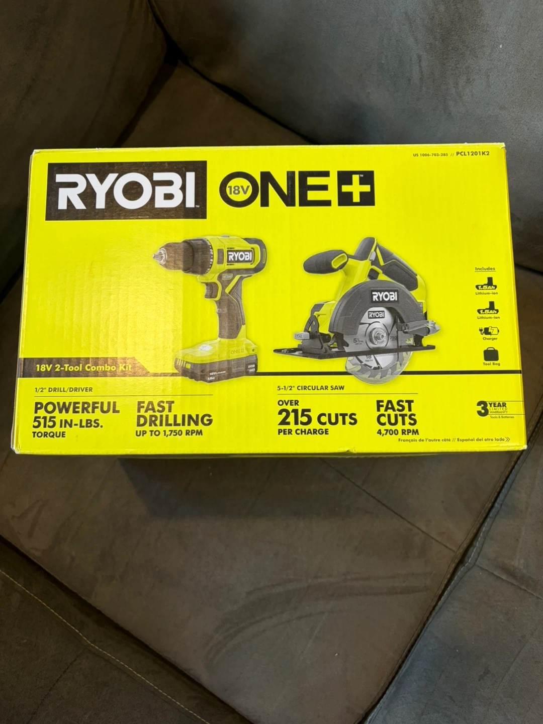 Selling a brand new Ryobi ONE+ 18V 2-Tool Combo Kit! This kit includes a 1/2" drill/driver and a 5-1/2" circular saw.