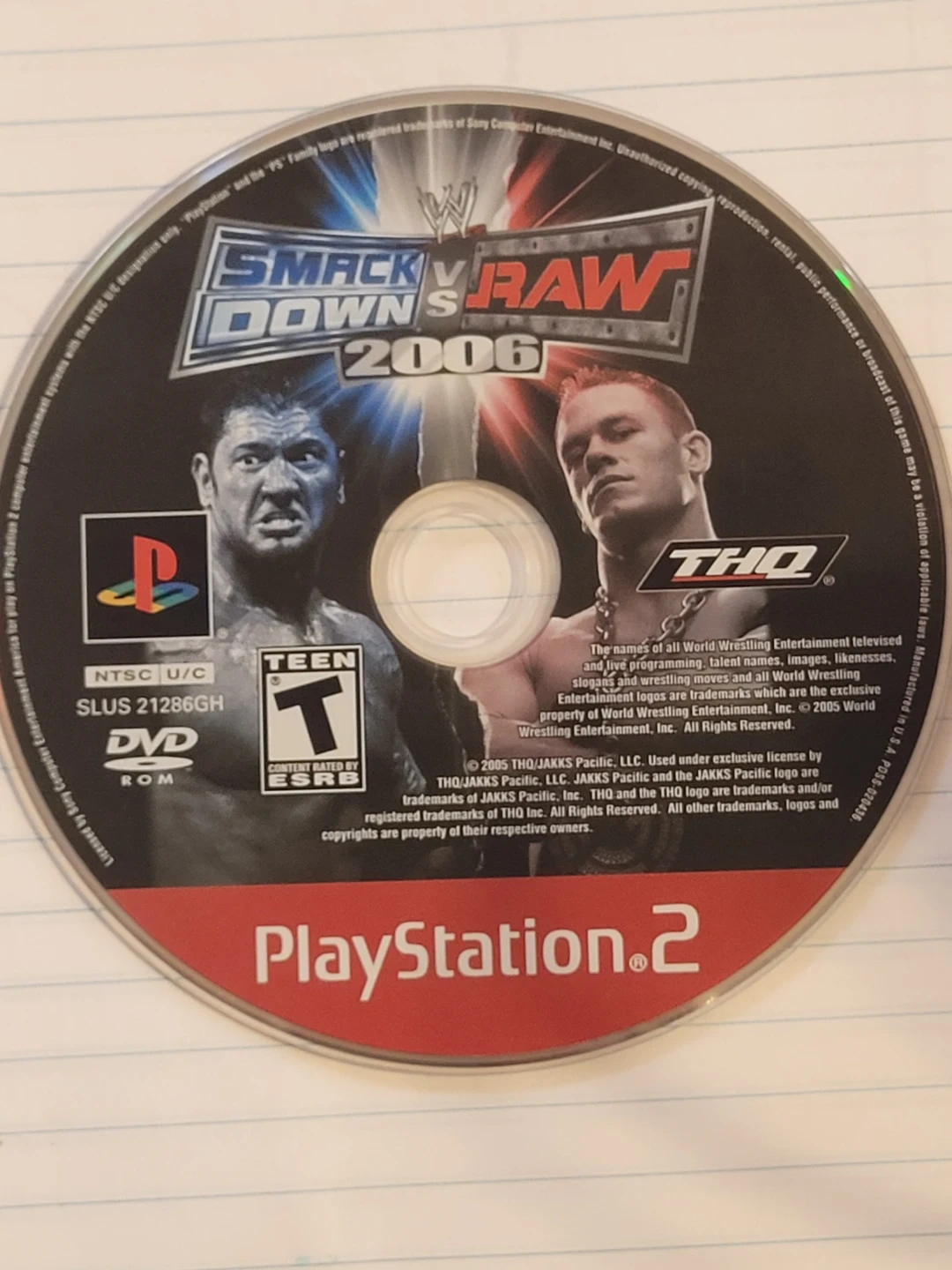WWE SmackDown! vs. Raw 2006 game disc for PlayStation 2. This is just the disc, no case or manual included. Region NTSC U/C.