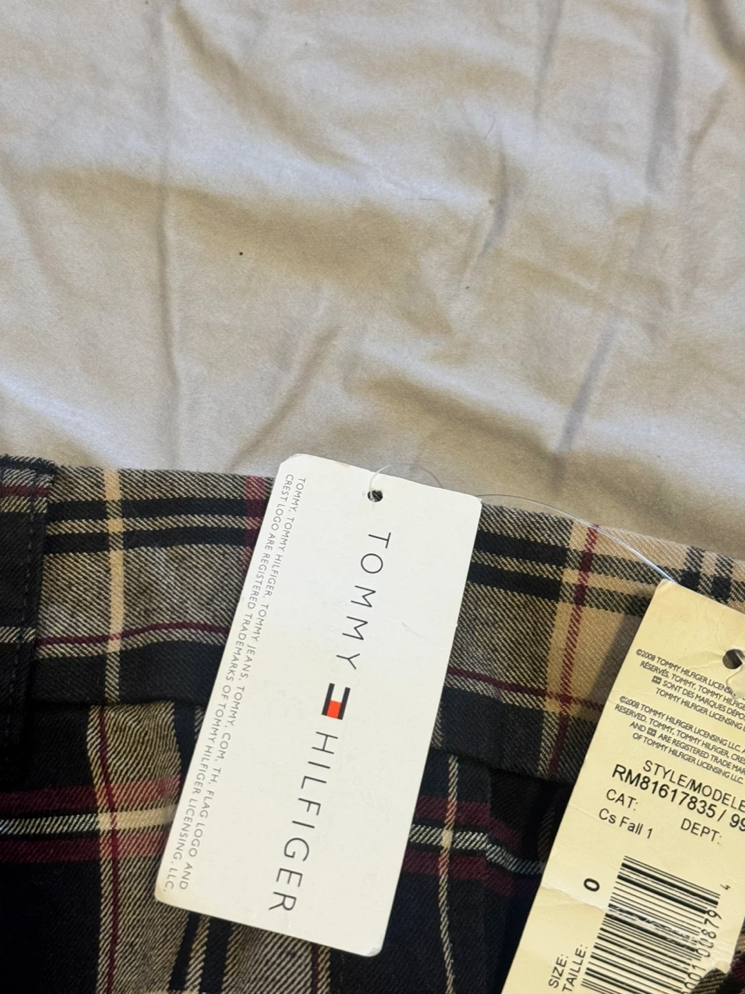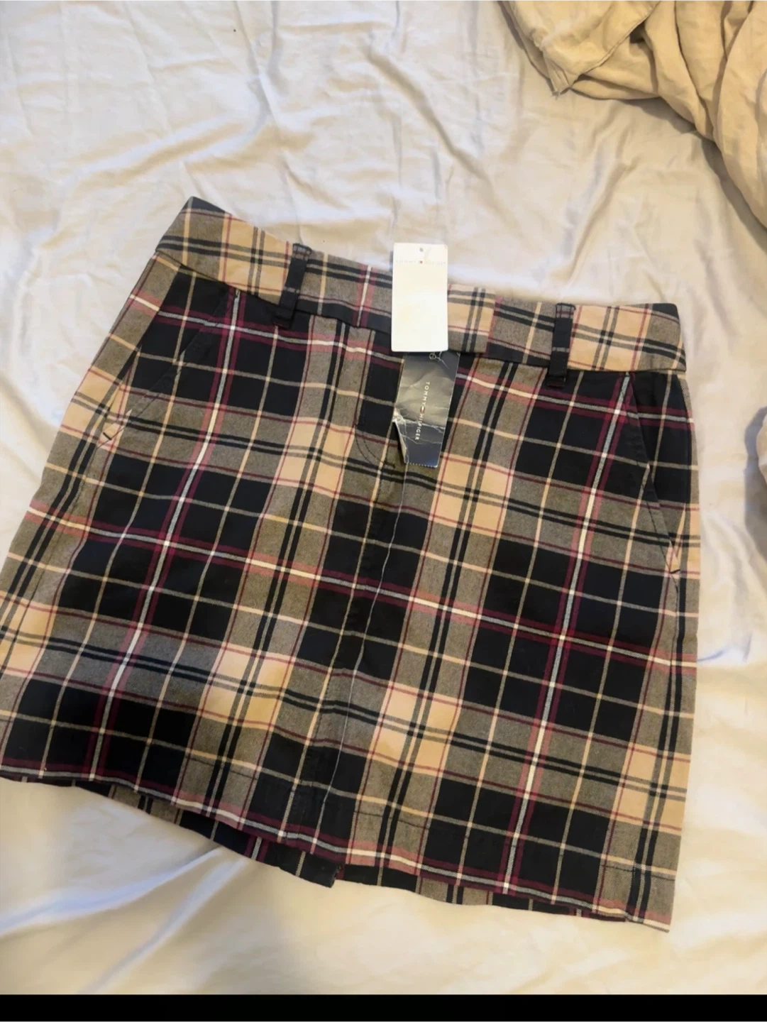 Tommy Hilfiger mini skirt with a classic plaid pattern. It's a size 0 but fits loose with a button and zip closure. This skirt features front and back pockets.