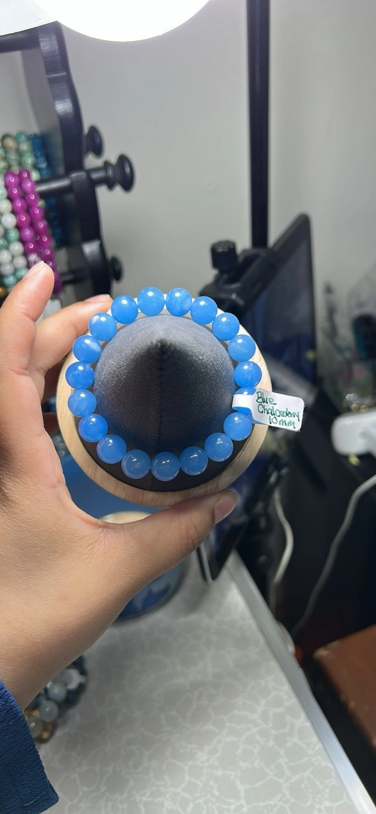 Blue Chalcedony Beaded Bracelet - 10mm Gemstone