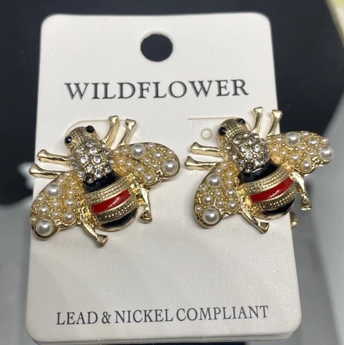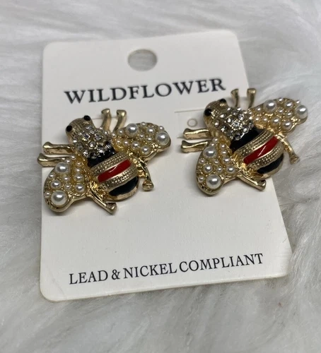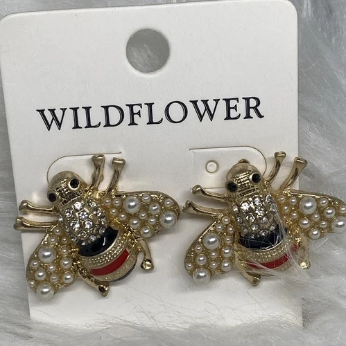 WILDFLOWERS QUEEN BEES EARRINGS INSECT NATURE JEWELRY