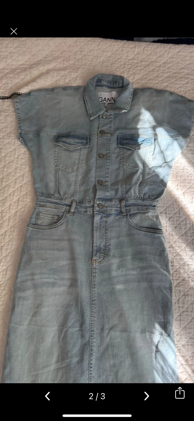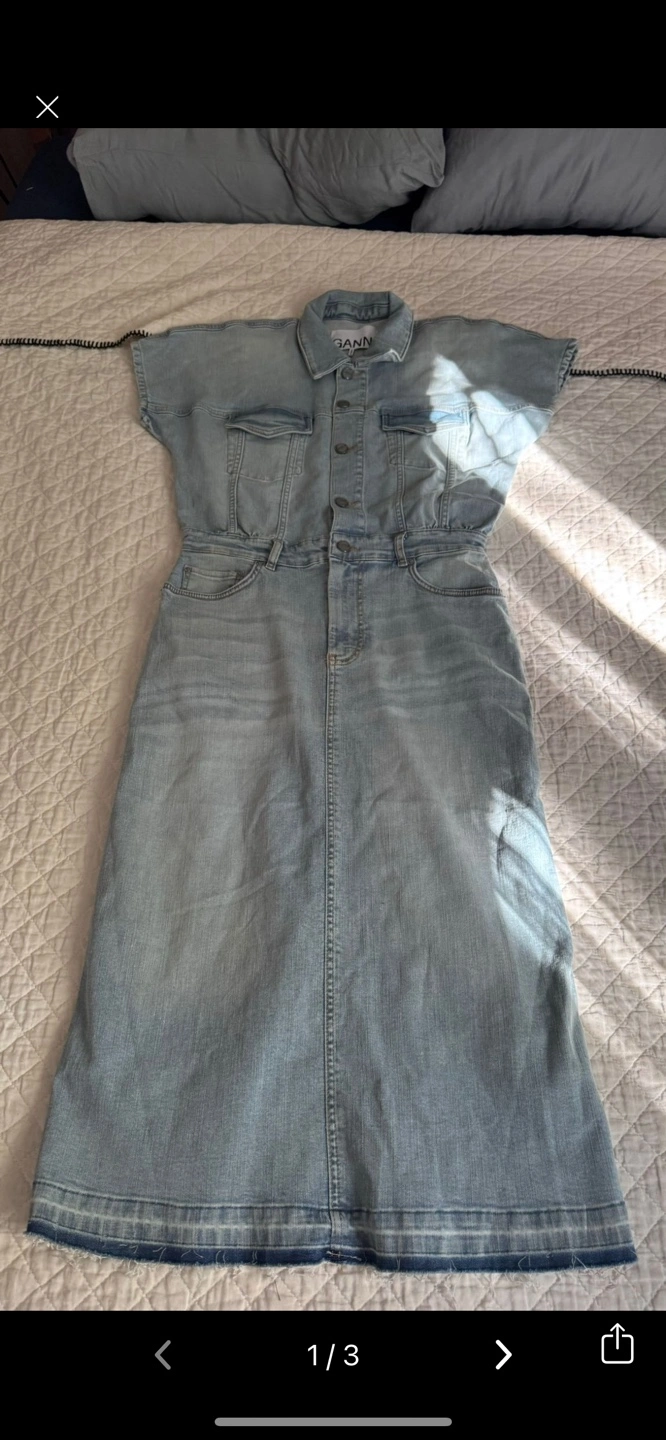 Ganni Light Wash Denim Midi Dress