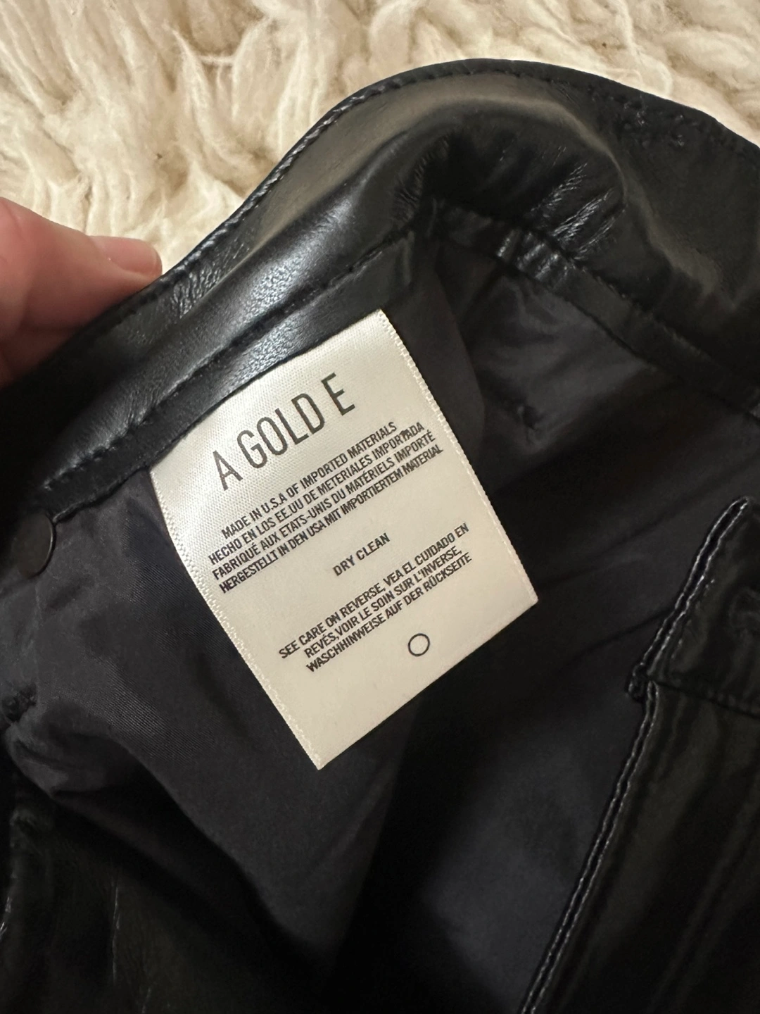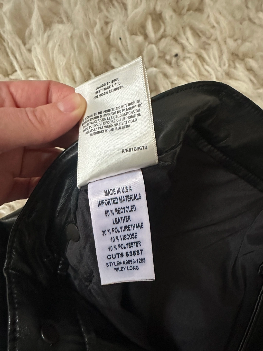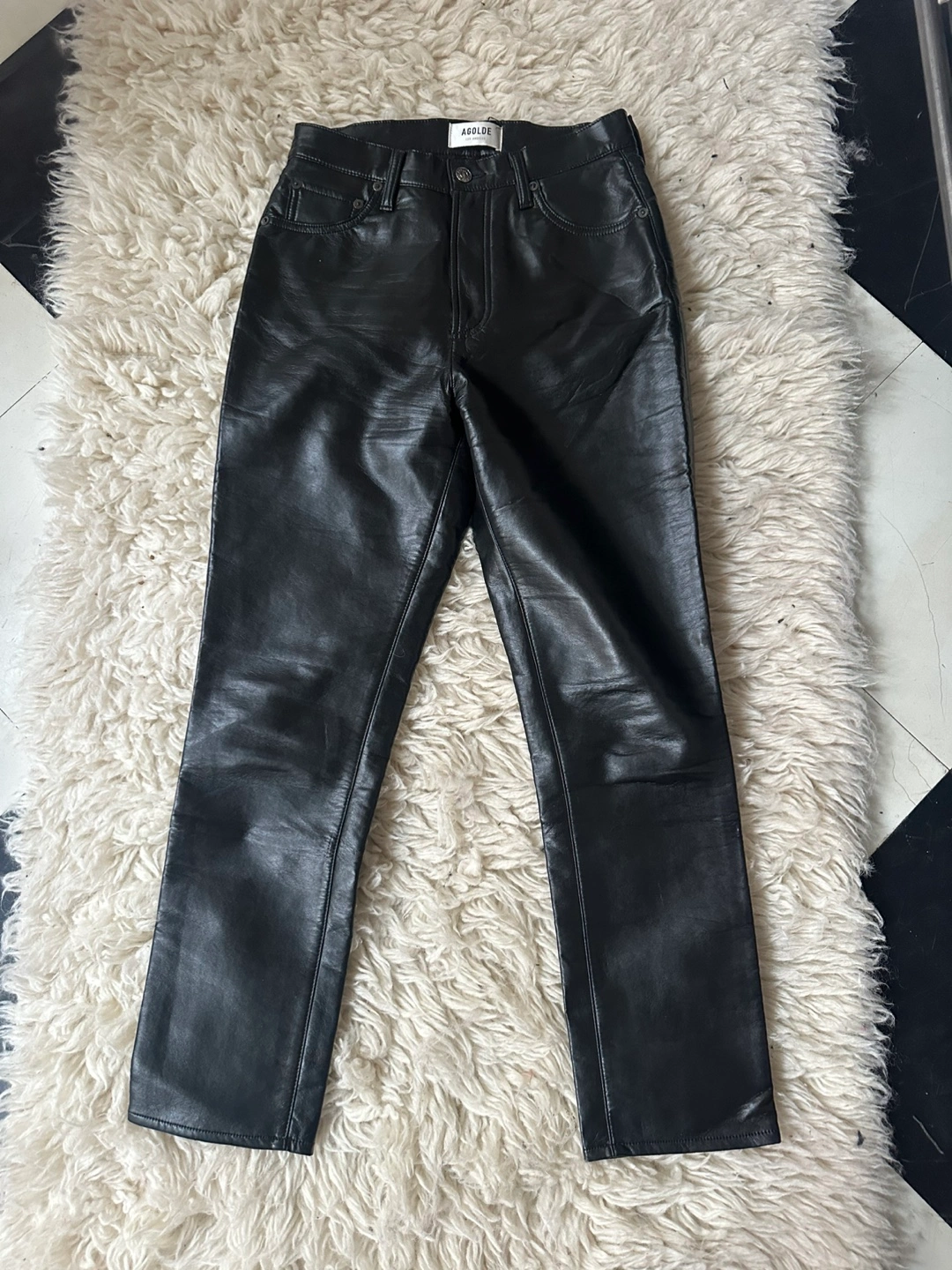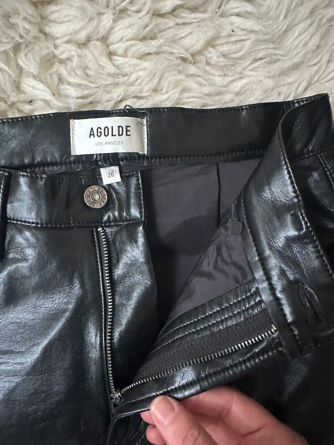 AGOLDE Recycled Leather Riley Long Black Size 26 Retail $348