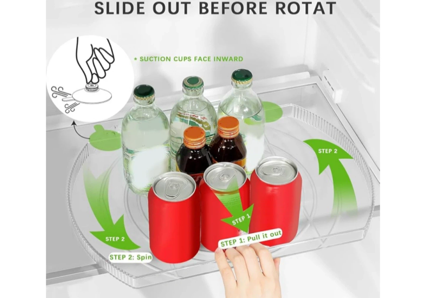 organizer makes it easy to see and grab items. It slides out before rotating for convenient access.