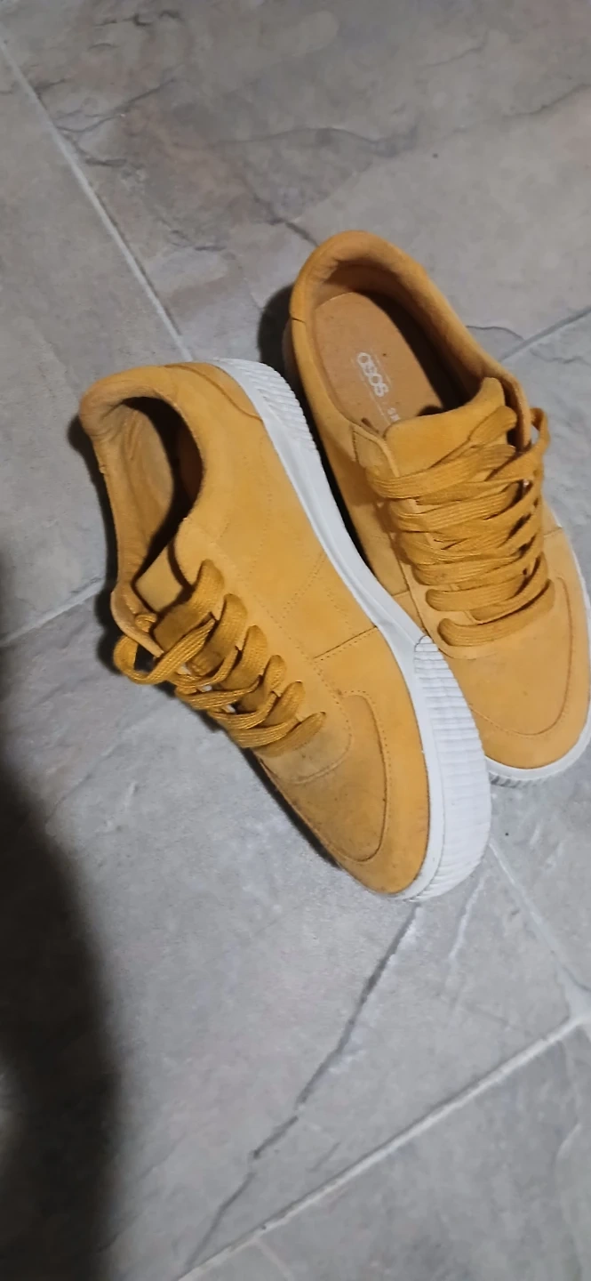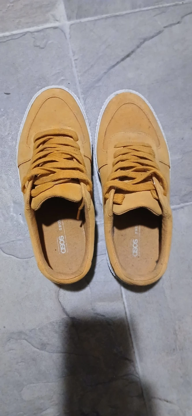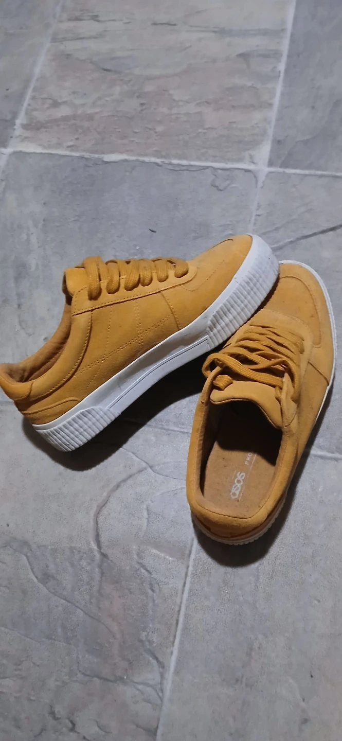 I am selling this ASOS sneakers, come in a mustard yellow suede in size 6.