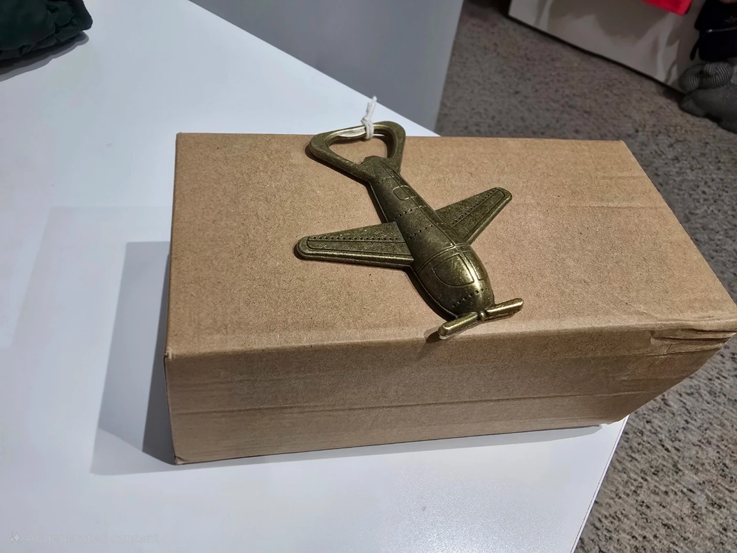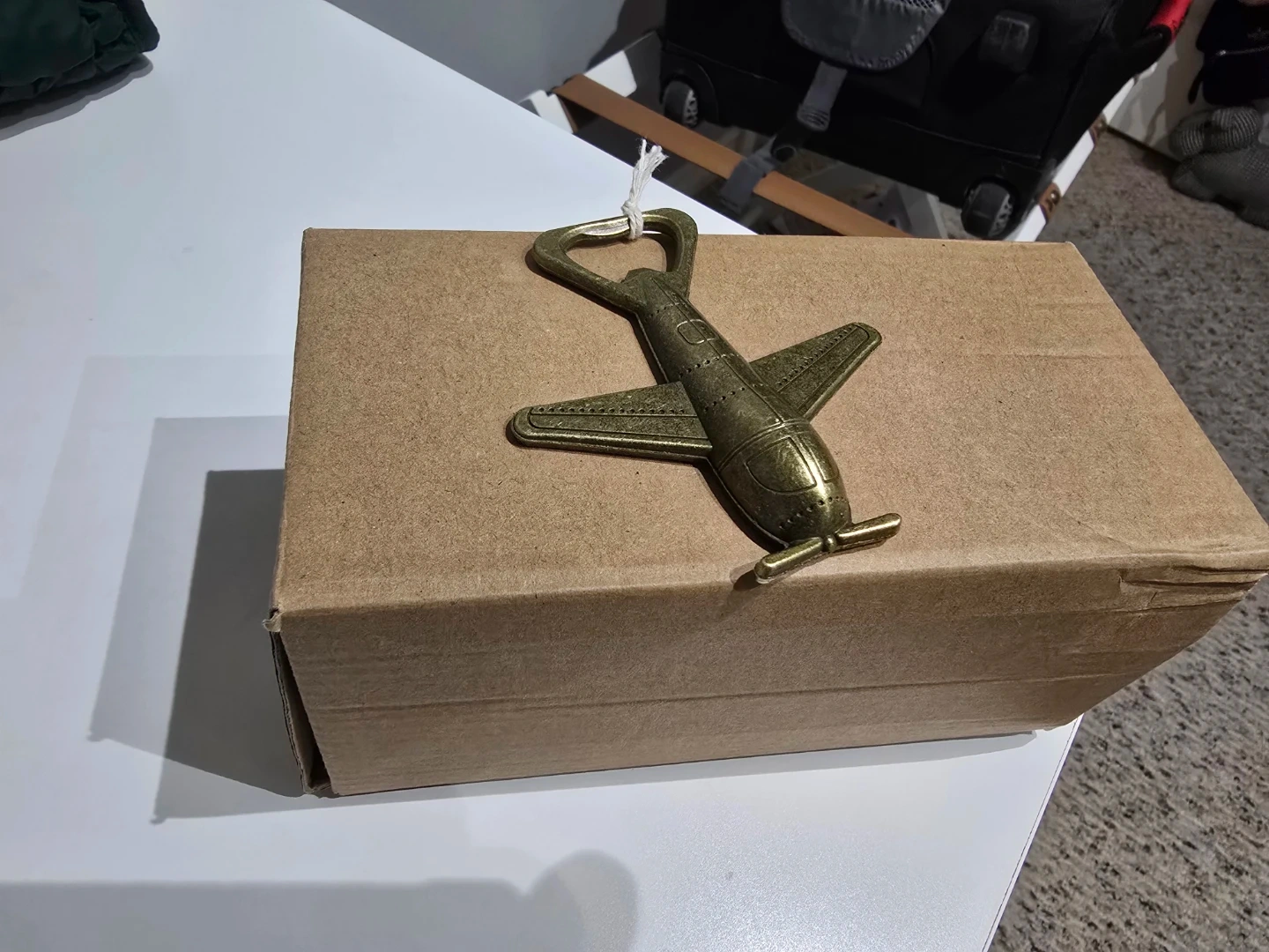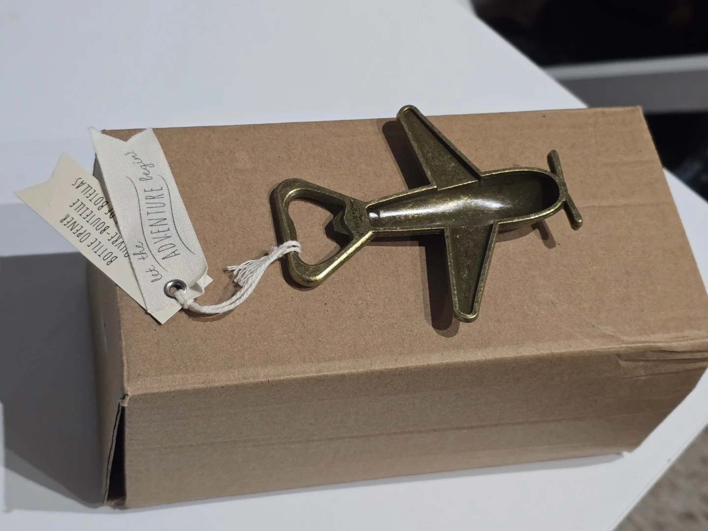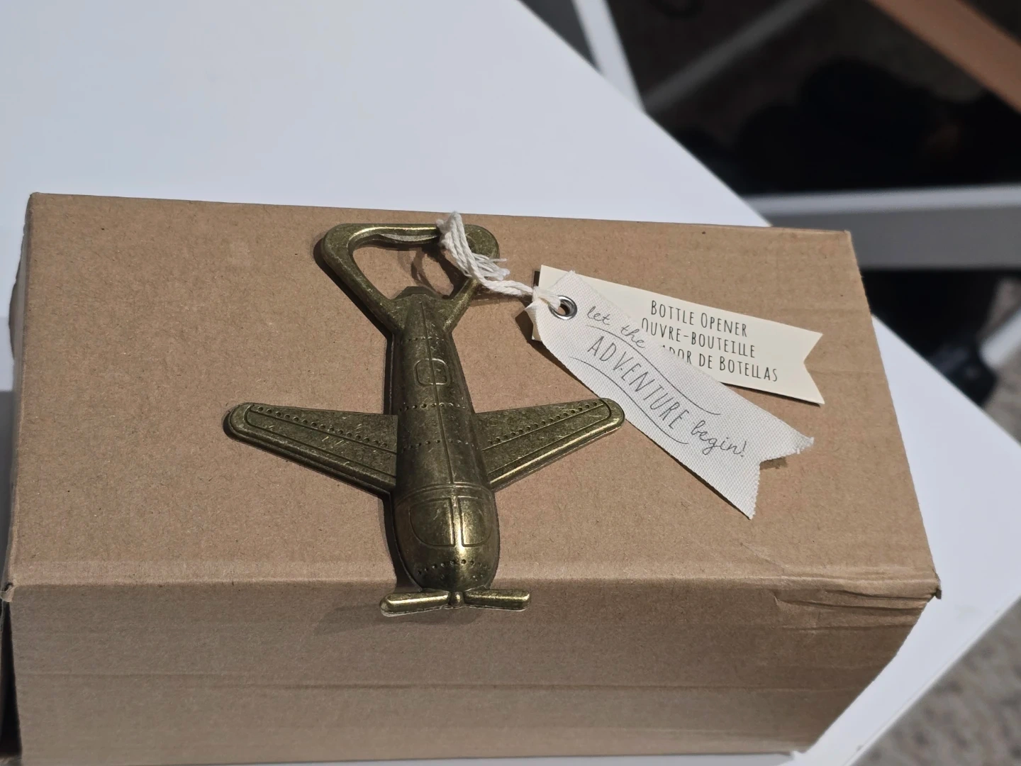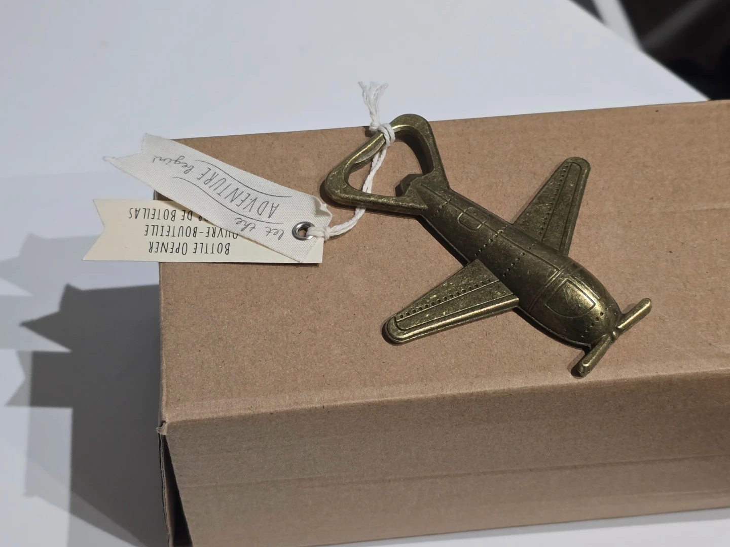 Kate Aspen Airplane Bottle Opener Brass w/ Tag