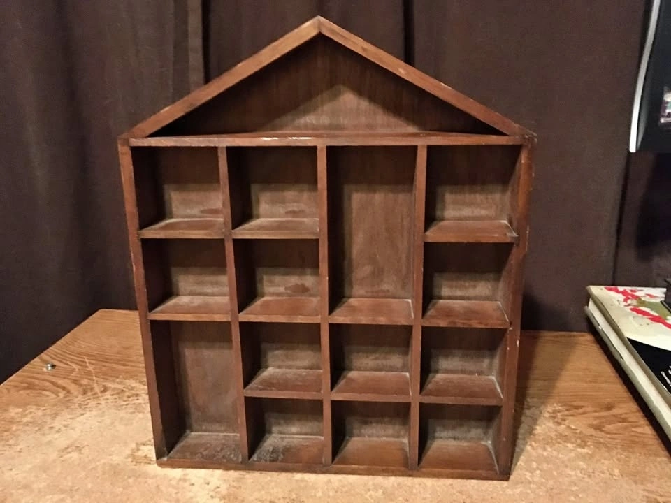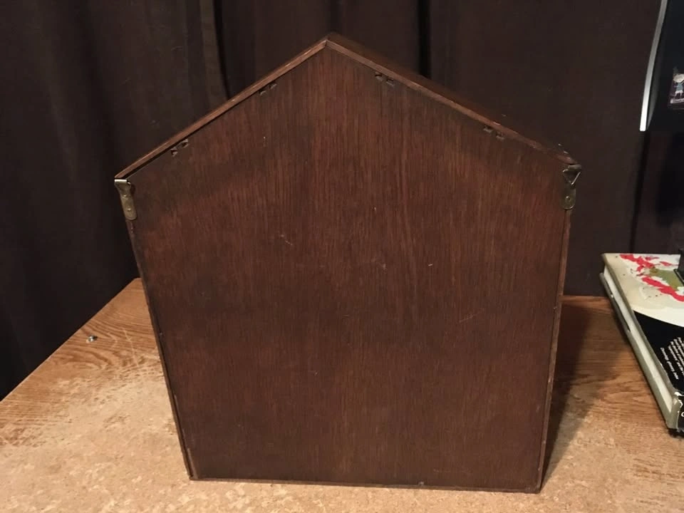 BROWN WOOD WALL SHELF SHADOW BOX HOUSE SHAPED 14.5" X 12" X 1.5"