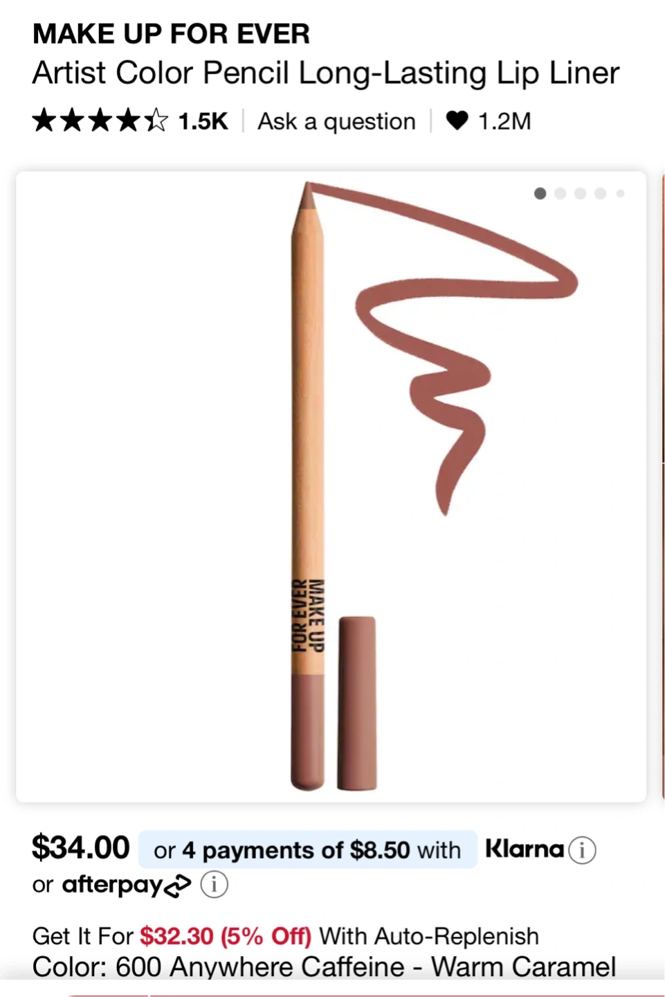 MAKE UP FOR EVER Artist Color Pencil Long-Lasting Lip Liner. Shade 600 Anywhere Caffeine - Warm Caramel. This lip liner offers long-lasting wear. It's great for precise lip application. Got as gift but not my color.