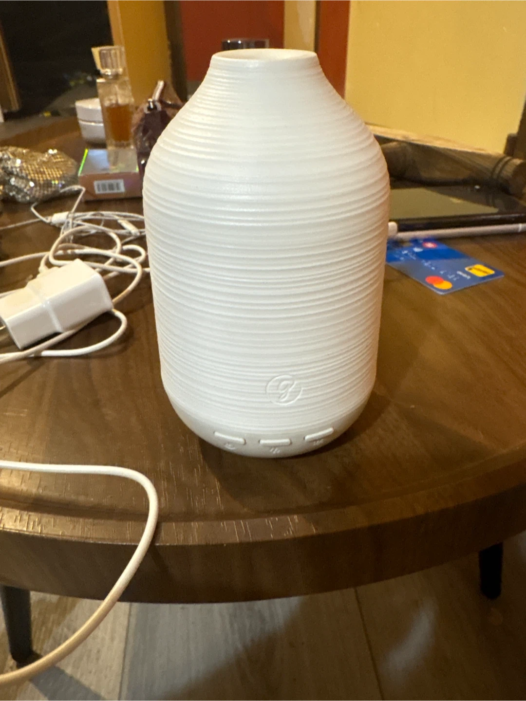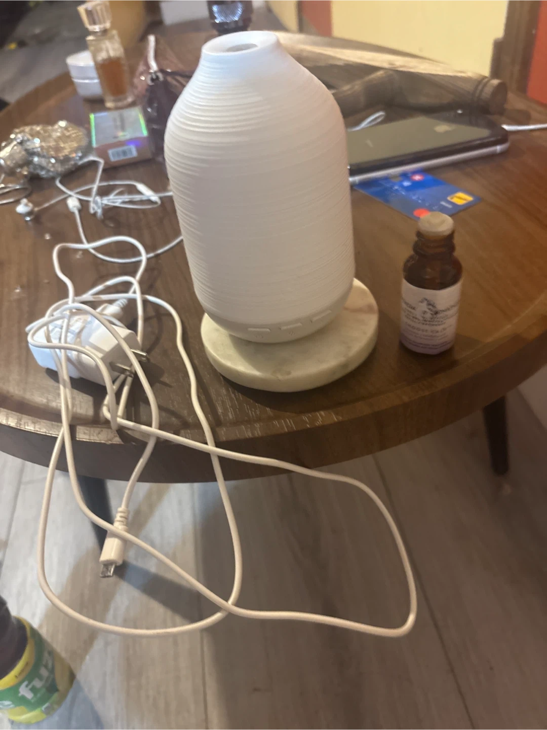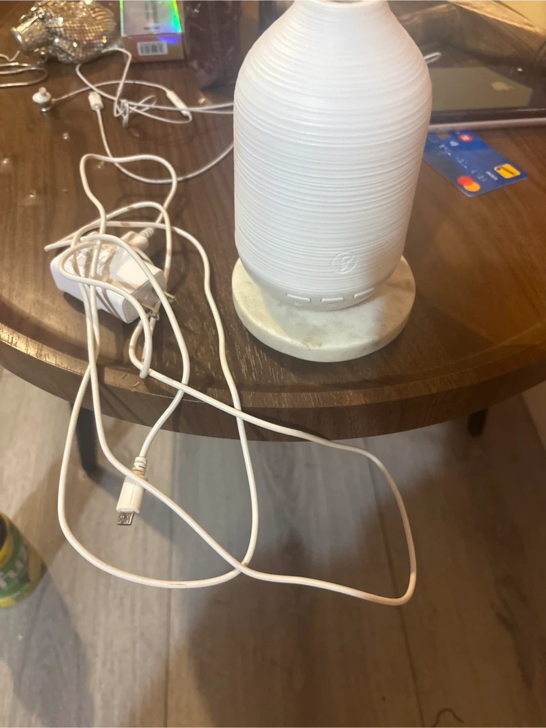 Selling a white aromatherapy diffuser. It comes with a charger. It is in good condition and ready to use in your home!