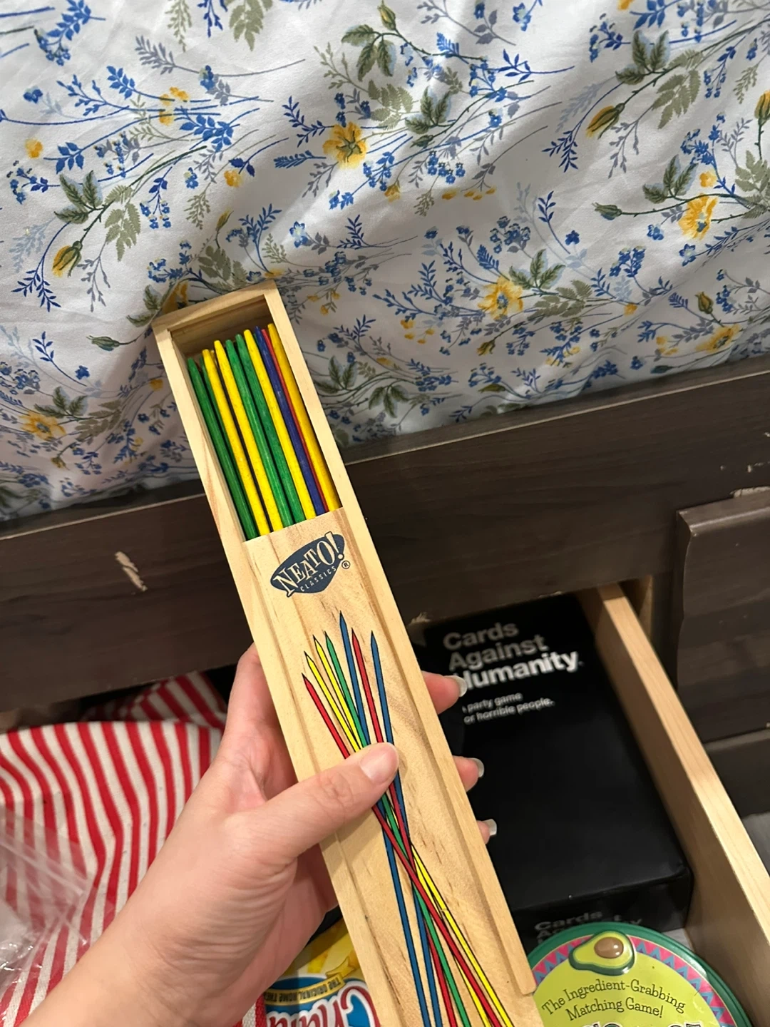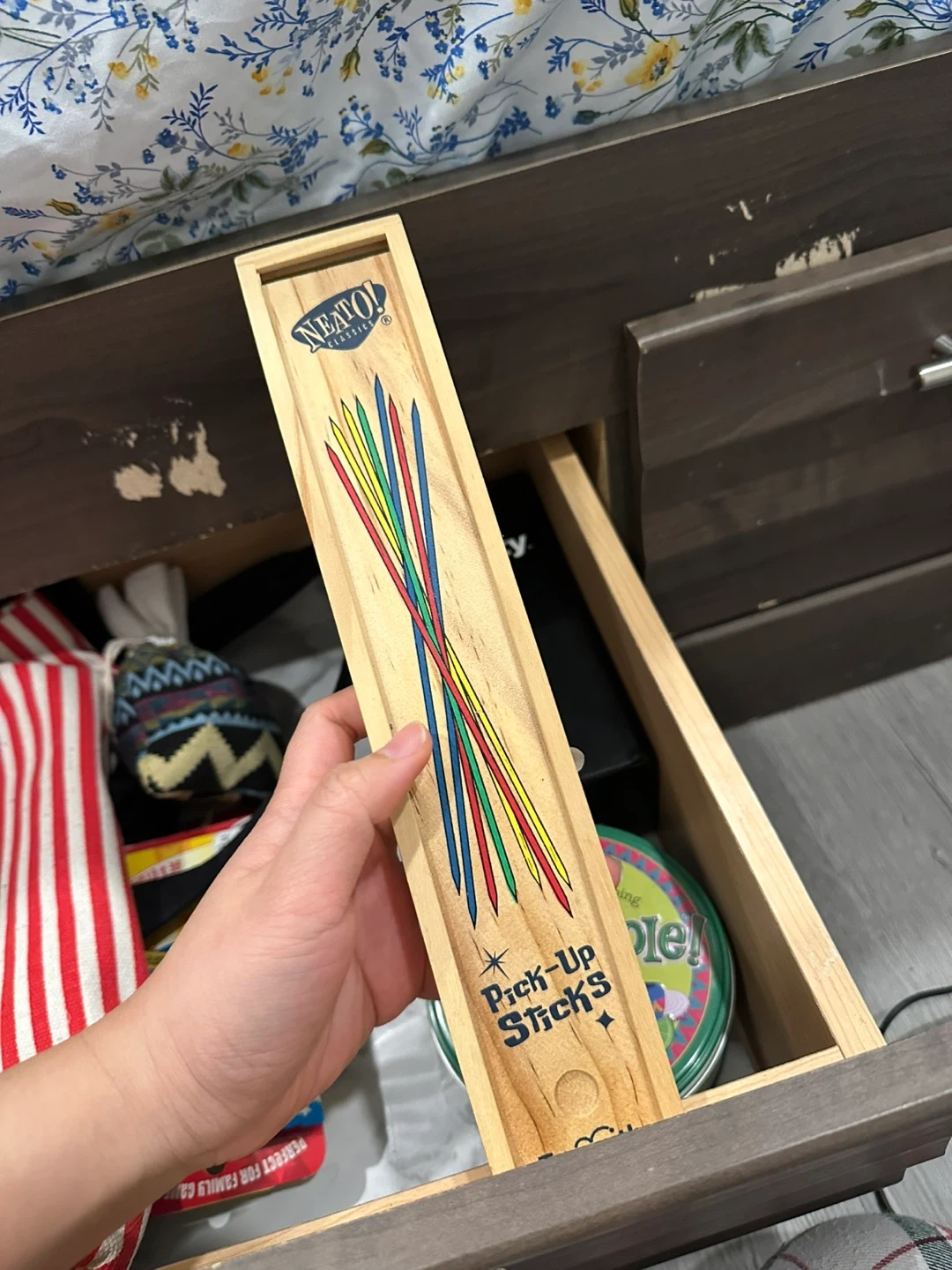 Selling a classic game of Pick-Up Sticks by Neato! This set comes in a wooden box, making it easy to store and bring out for game night. Great for all ages and a fun way to challenge your friends and family