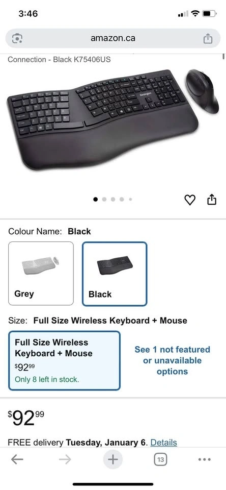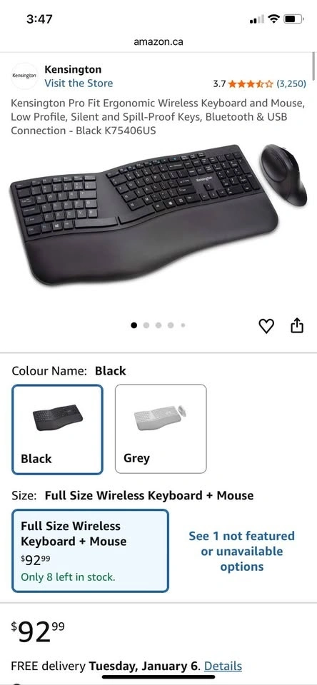 Brand new, still sealed, Kensington Pro Fit Ergonomic Wireless Keyboard and Mouse. Ergonomic design for comfort, spill-proof keys, and wireless connectivity. Includes both keyboard and mouse.