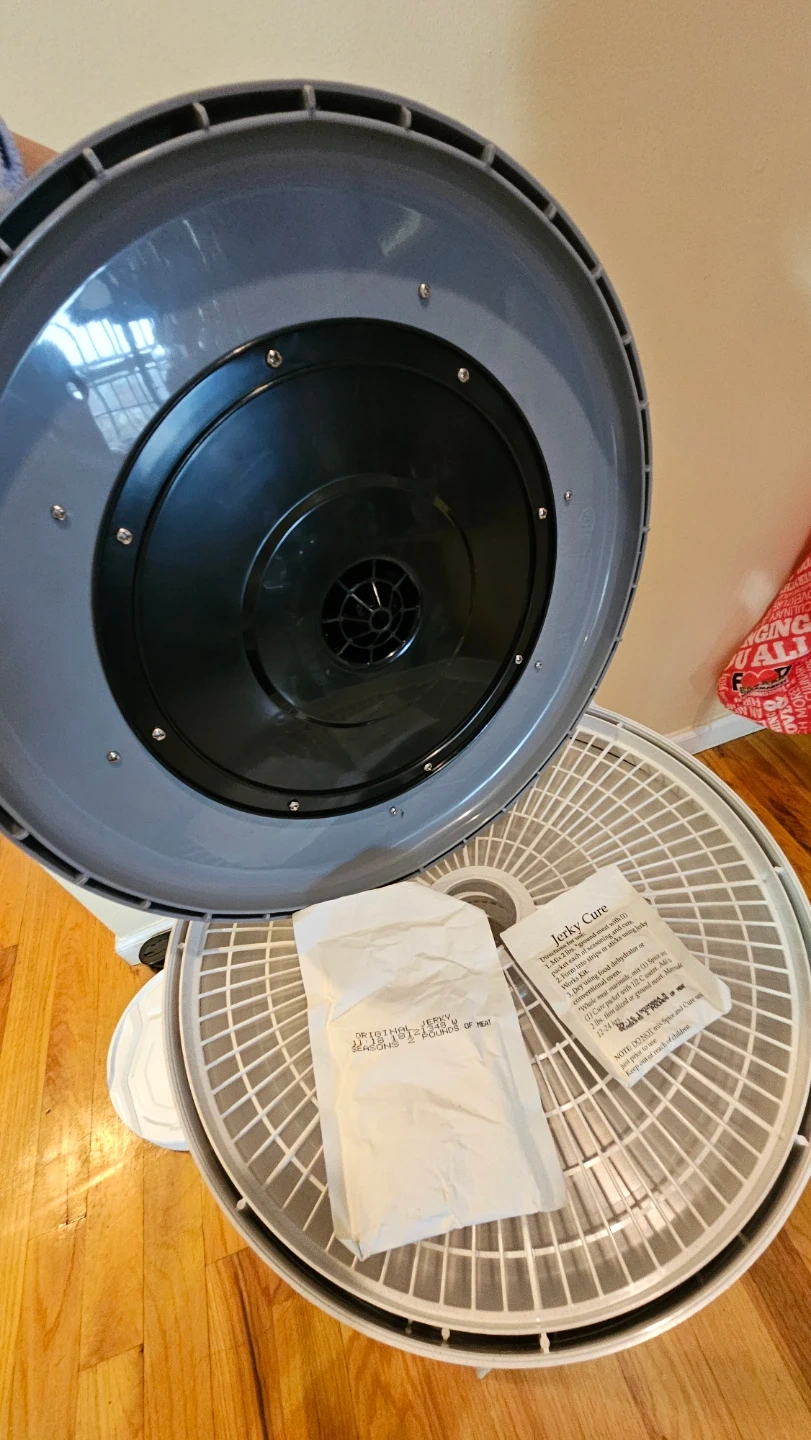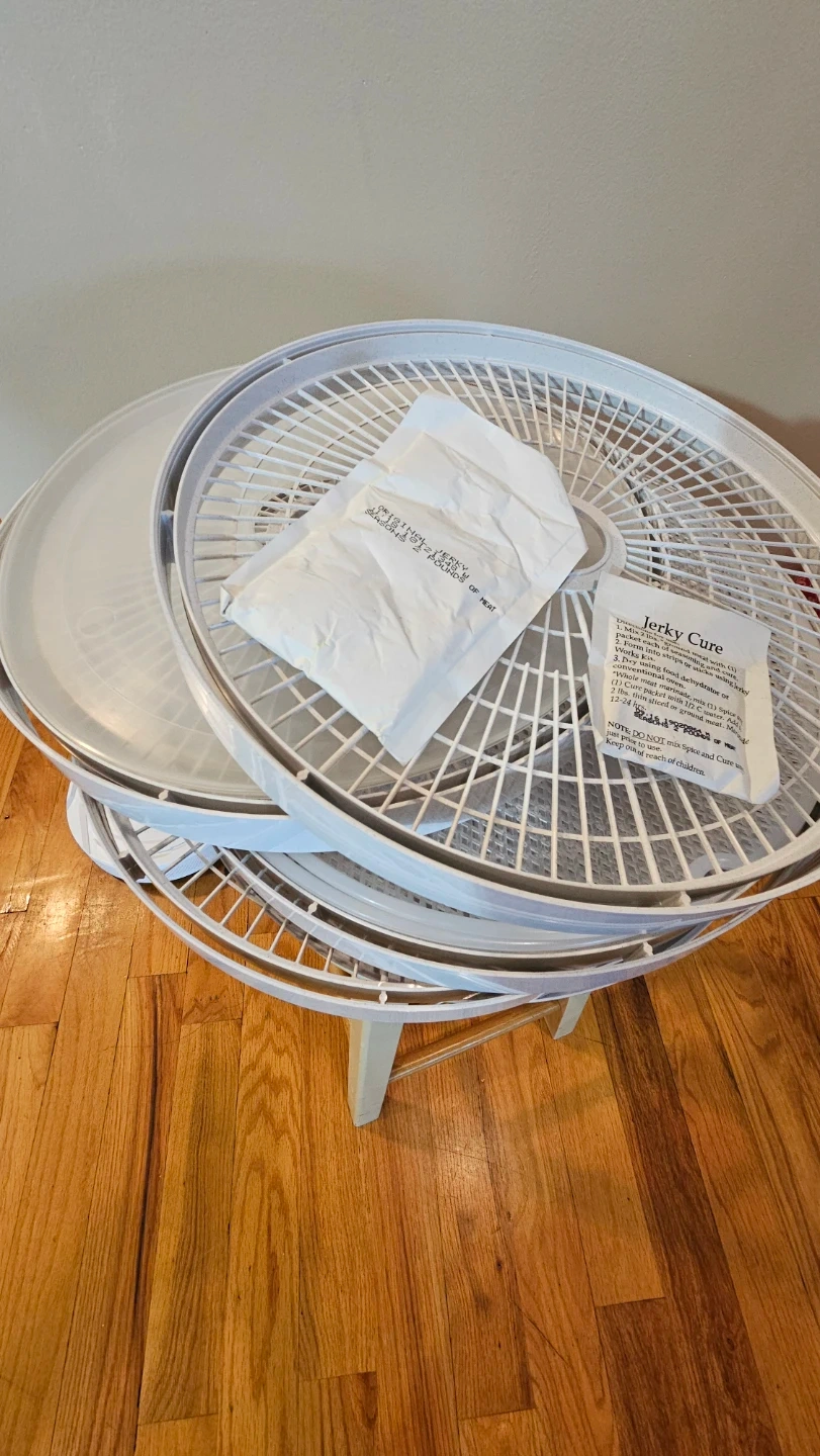 This Nesco dehydrator is designed for food and jerky. It has multiple temperature settings for fruits & vegetables, nuts & seeds, herbs & spices, jerky, meats, and fish. Includes jerky cure packets.