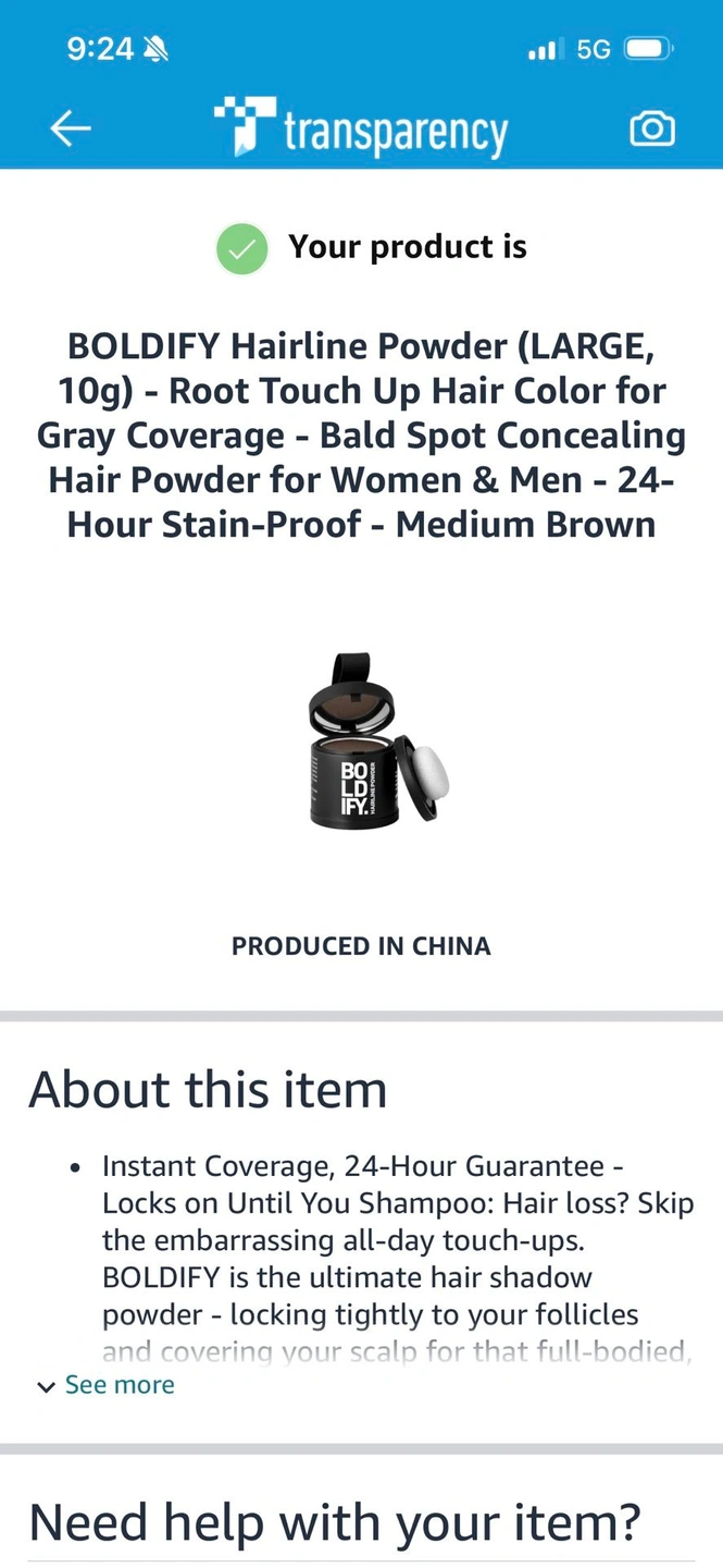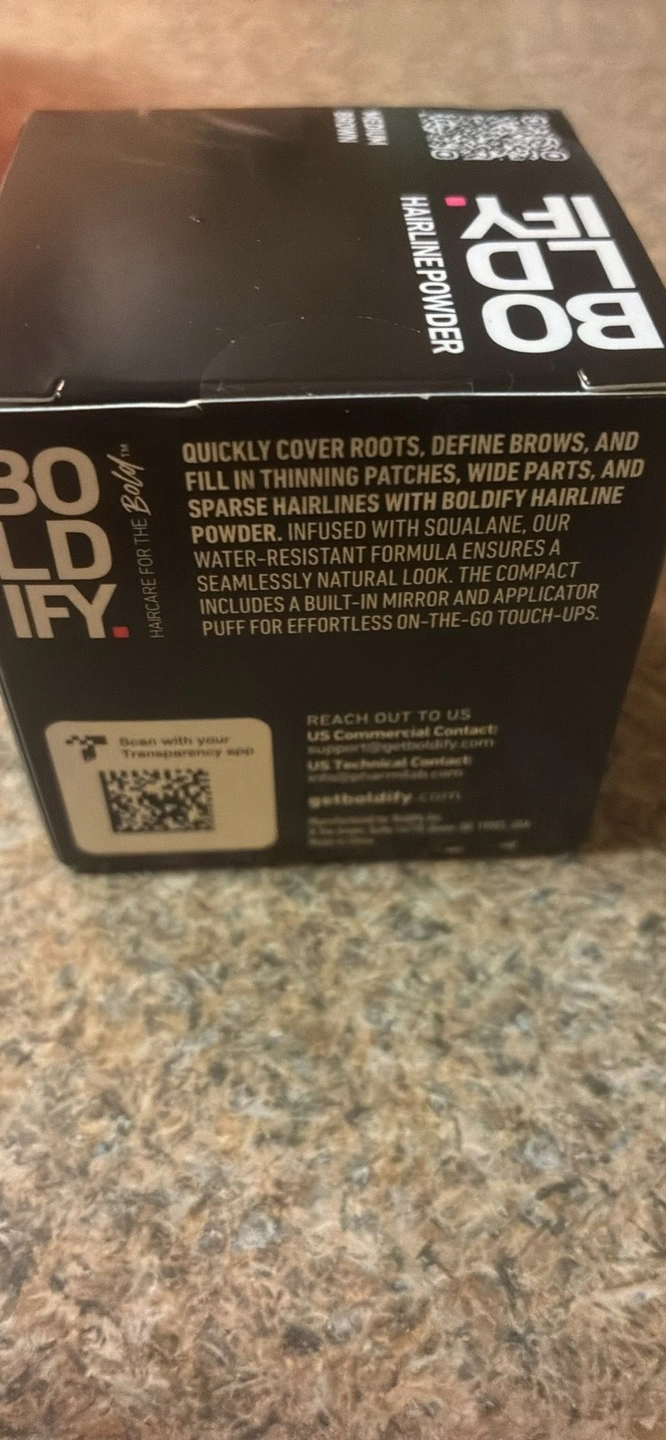 BOLDIFY Hairline Powder (LARGE, 10g) - Root Touch Up Hair Color for Gray Coverage - Bald Spot Concealing Hair Powder for Women & Men - 24-Hour Stain-Proof - Medium Brown. Feel free to message if you have any questions!