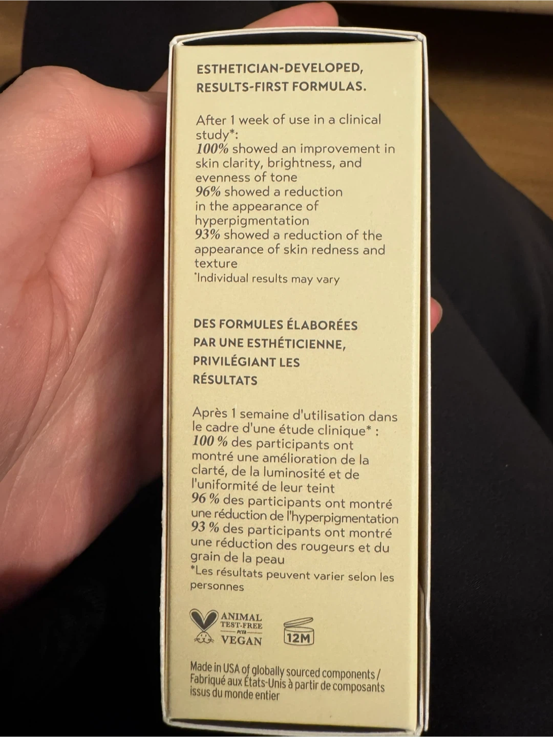 Esthetician-developed serum with a 10% Azelaic Complex. It showed 100% improvement in skin clarity, brightness, and evenness of tone in a clinical study. Vegan formula made in the USA.