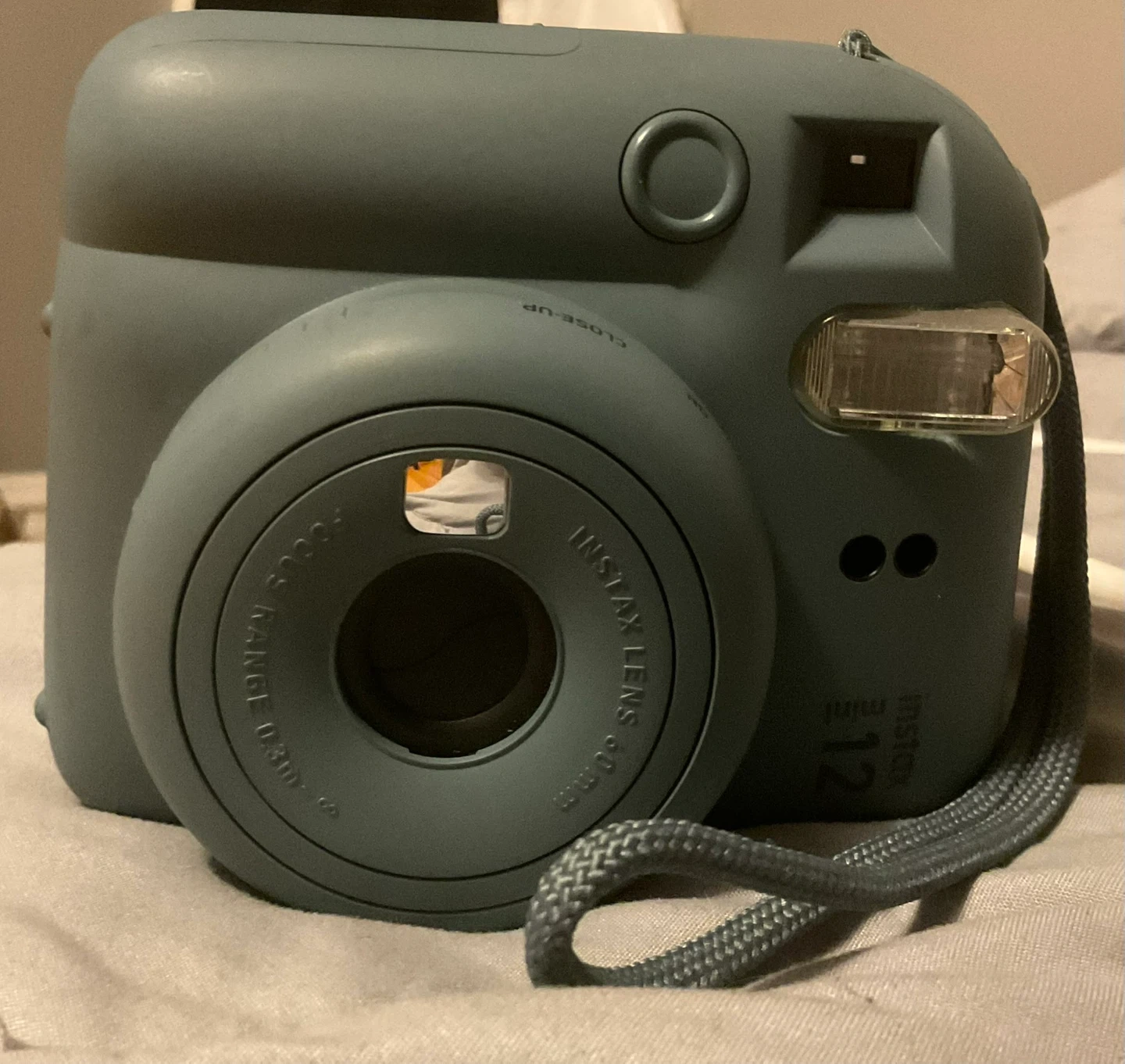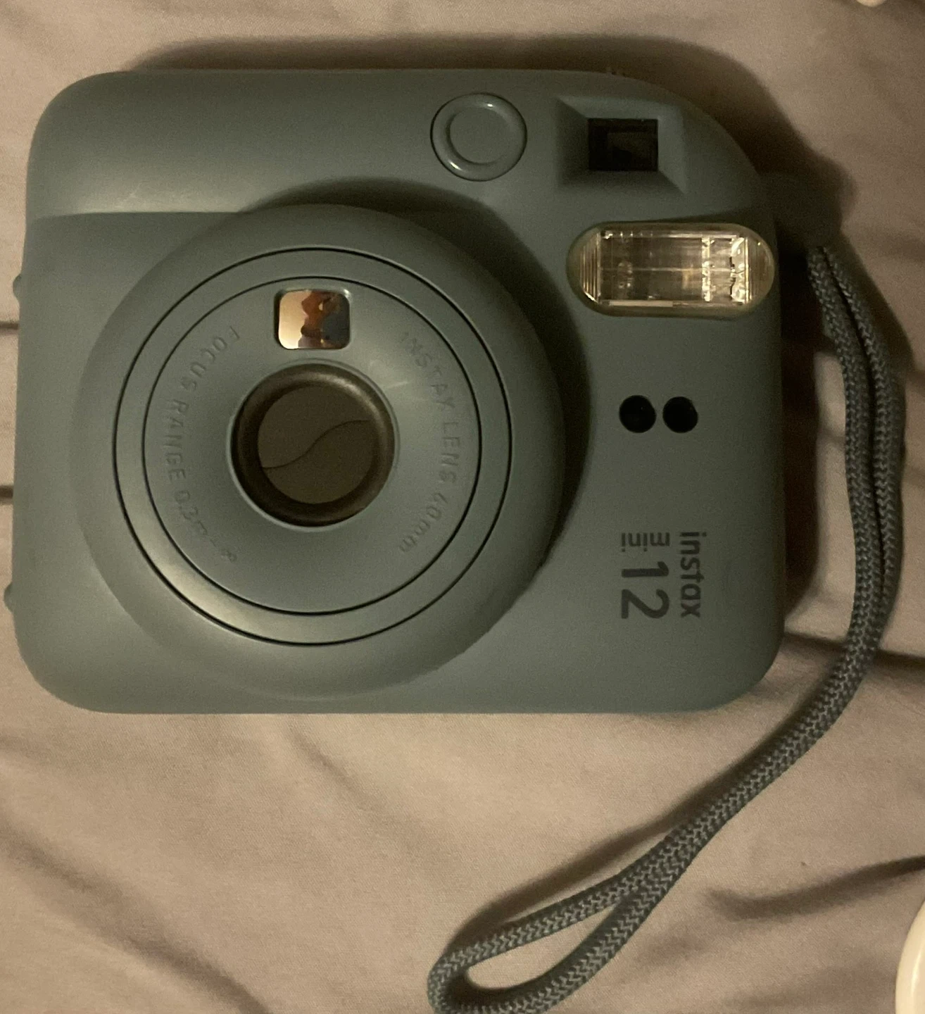 This is a Fujifilm Instax Mini 12 instant camera in Pastel Blue color